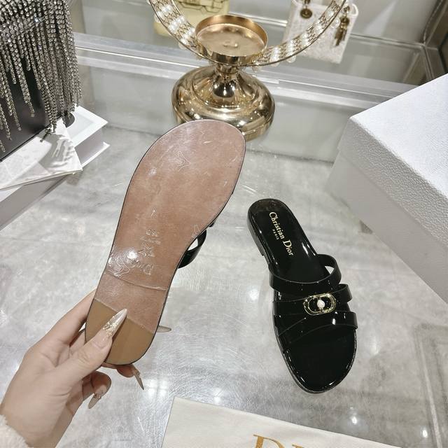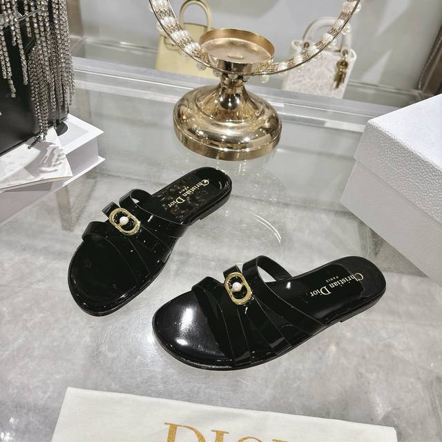 Factory direct. Dior 2026 Spring/Summer New D-Club Jelly Color Hollow-out Cross-strap Heel Pearl Women's Shoes. Cd Logo Hardware Buckle Flat Round Toe Open Toe Sandals. Two different options are available. Comfortable and casual for everyday wear, high-heeled and fashionable, full of femininity. Heel height is about 7.5cm. Italian genuine leather sole. Sizes: 34-41. 34, 40, 41. Custom orders are non-refundable and non-exchangeable.