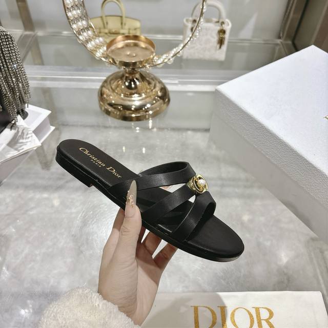 Factory direct. Dior 2026 Spring/Summer New D-Club Jelly Color Hollow-out Cross-strap Heel Pearl Women's Shoes. Cd Logo Hardware Buckle Flat Round Toe Open Toe Sandals. Two different options are available. Comfortable and casual for everyday wear, high-heeled and fashionable, full of femininity. Heel height is about 7.5cm. Italian genuine leather sole. Sizes: 34-41. 34, 40, 41. Custom orders are non-refundable and non-exchangeable.