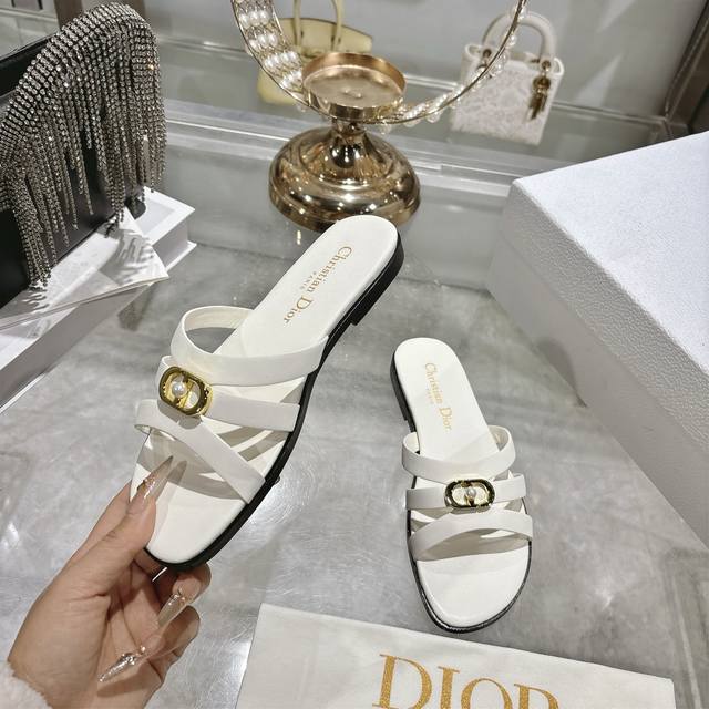 Factory direct. Dior 2026 Spring/Summer New D-Club Jelly Color Hollow-out Cross-strap Heel Pearl Women's Shoes. Cd Logo Hardware Buckle Flat Round Toe Open Toe Sandals. Two different options are available. Comfortable and casual for everyday wear, high-heeled and fashionable, full of femininity. Heel height is about 7.5cm. Italian genuine leather sole. Sizes: 34-41. 34, 40, 41. Custom orders are non-refundable and non-exchangeable.