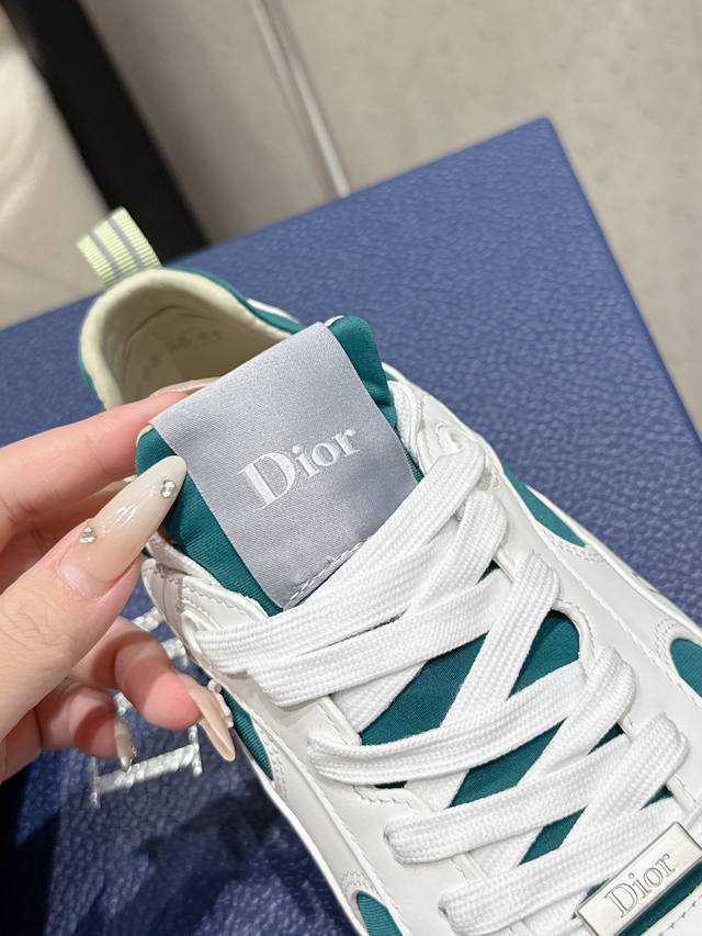 Factory direct Dior Spring/Summer 2025 new couple casual sneakers. The upper is made of cowhide leather and mesh fabric, lightweight and breathable. The lettering on the side is highly recognizable, and the sporty design combined with tassel details adds a touch of elegance. Upper: Cowhide and cotton fabric. Sole: Original outsole. Sizes: 35-46. For sizes 39 and 40, please specify gender in the order notes. Women's size 40, Men's size 45 and 46. Custom orders are non-refundable and non-exchangeable.