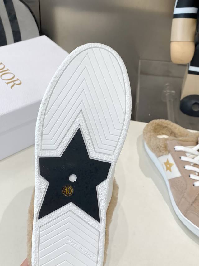 Factory Direct Dior Star Sneakers/Matches (DDD) These Dior Star sneakers continue the timeless silhouette, a new classic piece. Crafted from white calfskin, they are accented with tonal suede calfskin panels. Adorned with the Cd and Christian Dior Paris logos, a metallic star adorns one eyelet for added style. Lightweight and featuring the signature Christian Dior thin sole, they are suitable for all seasons and can be paired with various casual looks to add a finishing touch. DDD Sizes: 35-39 40.41 Custom Made DDD