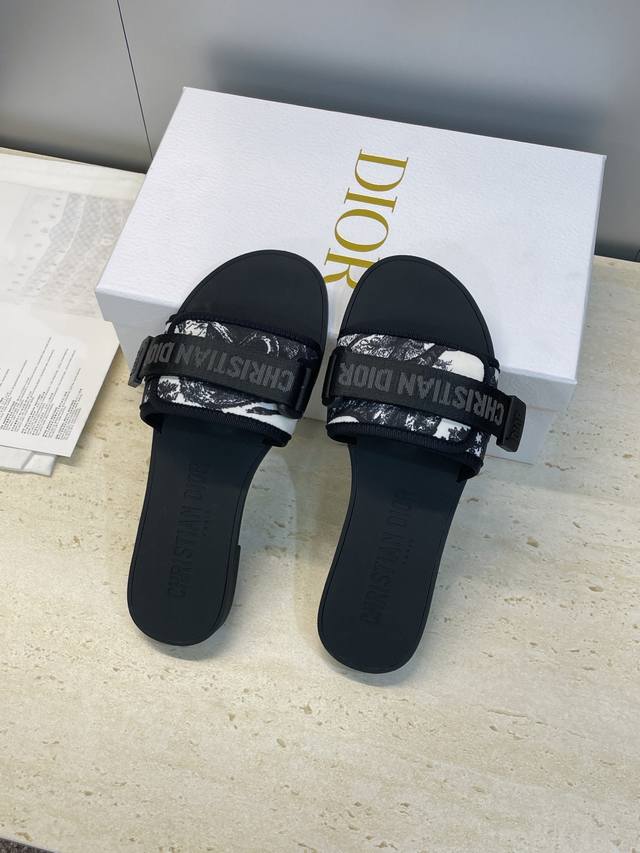 Factory direct price Dior 2025 Spring/Summer Newest Color Evolution Camouflage Women's Flat Color Block Open Toe Letter Logo Velcro Sandals Material: Original Custom 3D Embroidered Upper + Original Mold TPU Outsole Size: 35 42 40 41 42 Custom orders are non-refundable