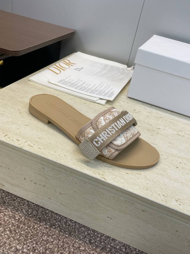 Factory direct price Dior 2025 Spring/Summer Newest Color Evolution Camouflage Women's Flat Color Block Open Toe Letter Logo Velcro Sandals Material: Original Custom 3D Embroidered Upper + Original Mold TPU Outsole Size: 35 42 40 41 42 Custom orders are non-refundable