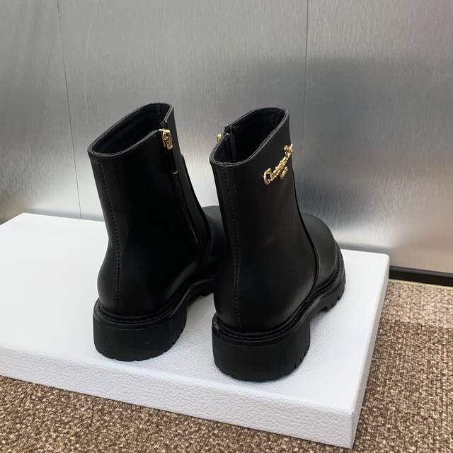Dior Dior Autumn and Winter New D-Town Series Punk Style Low-Heeled Women's Boots Celebrity Style Cd Letter Logo Hardware Buckle Motorcycle Boots Thick-Sole Round Toe Side Zipper Rider Ankle Boots