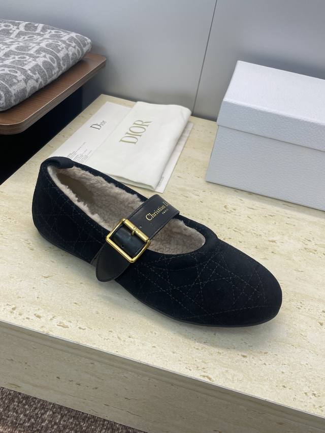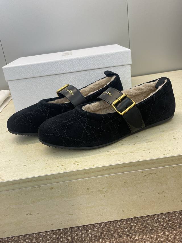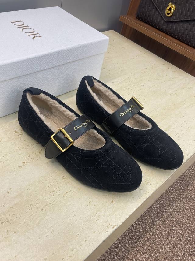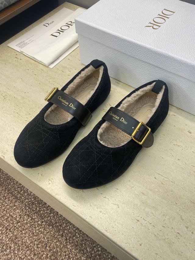 Factory Price DDD Dior 2025 Autumn/Winter New D-Alps Haute Couture Series D-Frost Flat Round Toe Ballet Style Women's Shoes Cd Logo Hardware Belt Buckle Fashion Color Block Casual Warm Lambswool Loafers DDD Material: Imported suede upper + 100% lambswool lining + original molded outsole DDD Size: 35-41 40.41 Custom orders are non-refundable DDD