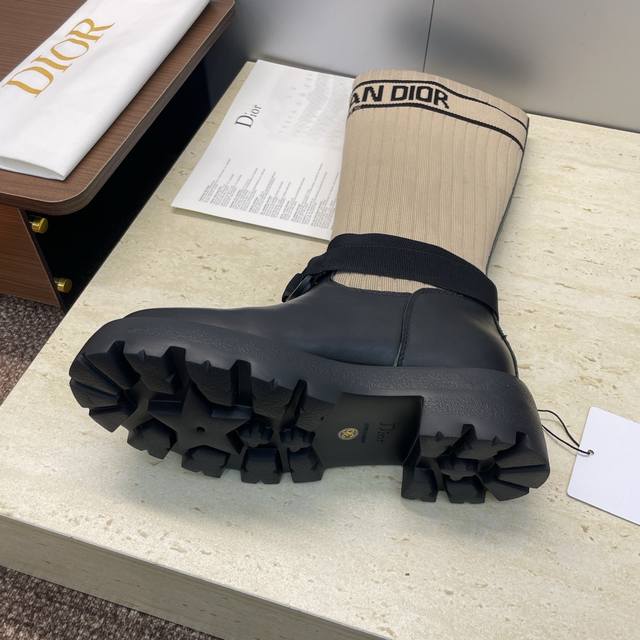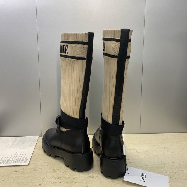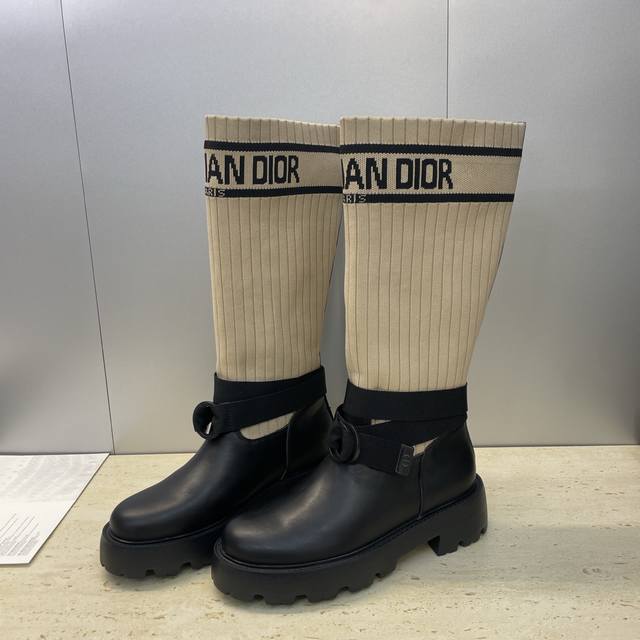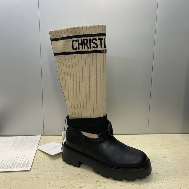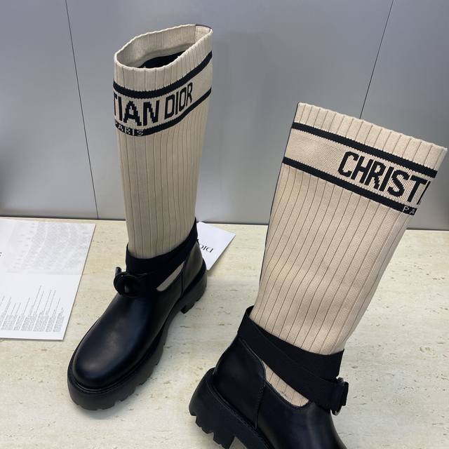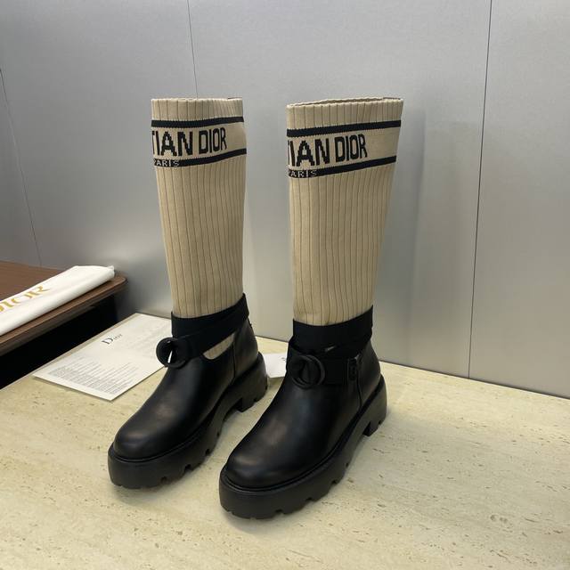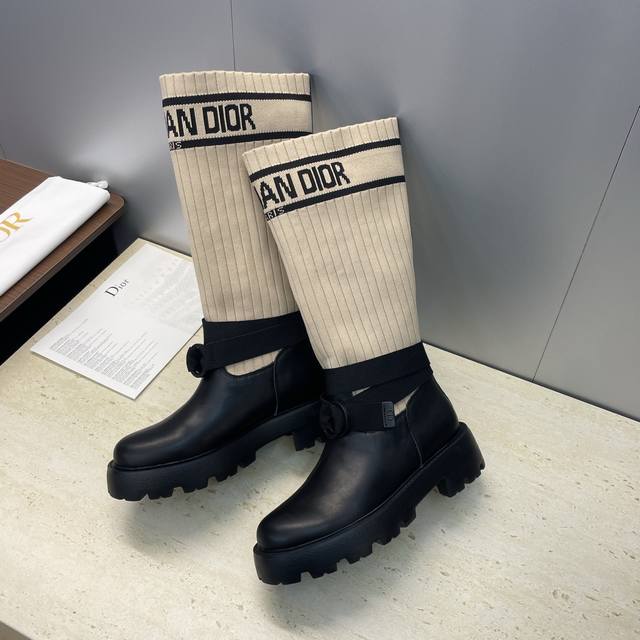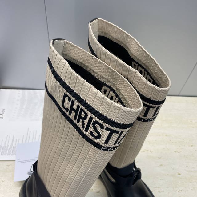Factory Price DDD Dior 2025 Autumn/Winter New Haute Couture Poster Style D-Major Embroidered Color Block Letter Logo Round Toe Elastic Wool Mid-Calf Women's Long Boots Celebrity Style Low Heel Slip-on Knight Military Boots DDD Material: Imported calfskin upper with the latest imported technical flyknit fabric + water-dyed sheepskin lining insole + original mold TPU outsole DDD Heel Height: 3cm DDD Size: 35-39 Standard Size 40, 41 Custom orders are non-refundable DDD