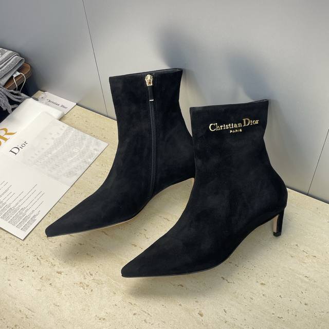 Factory price Dior 2025 Autumn/Winter New My-D Series Punk Style Mid-Heel Pointed Toe Side Zipper and Nude Martin Women's Ankle Boots Celebrity Style Cd Logo Hardware Buckle Motorcycle Boots Material: Imported calfskin upper, imported suede + water-dyed sheepskin lining + Italian genuine leather outsole + original mold hardware buckle Heel height: 5.5cm Size: 34-43 34.40.41.42.43 Customized, no returns or exchanges