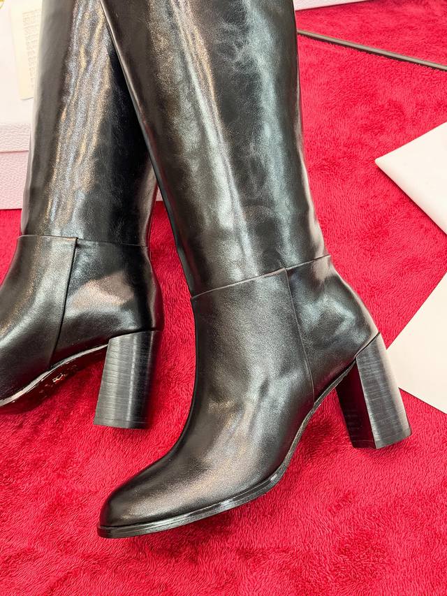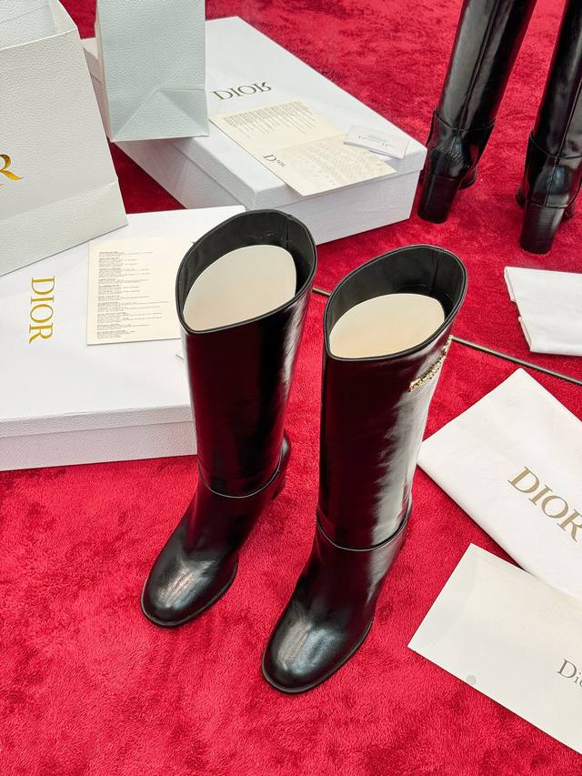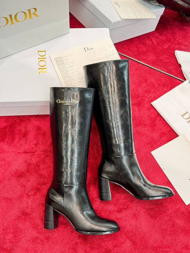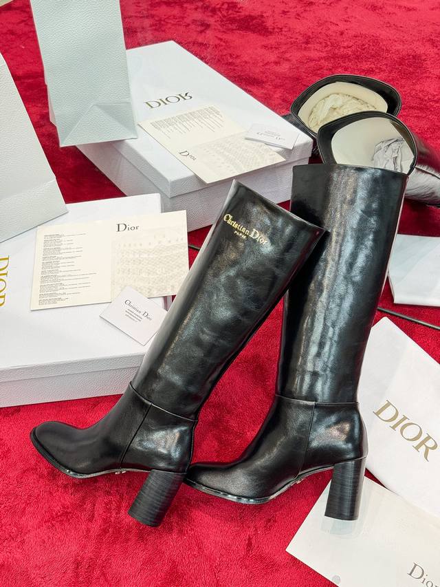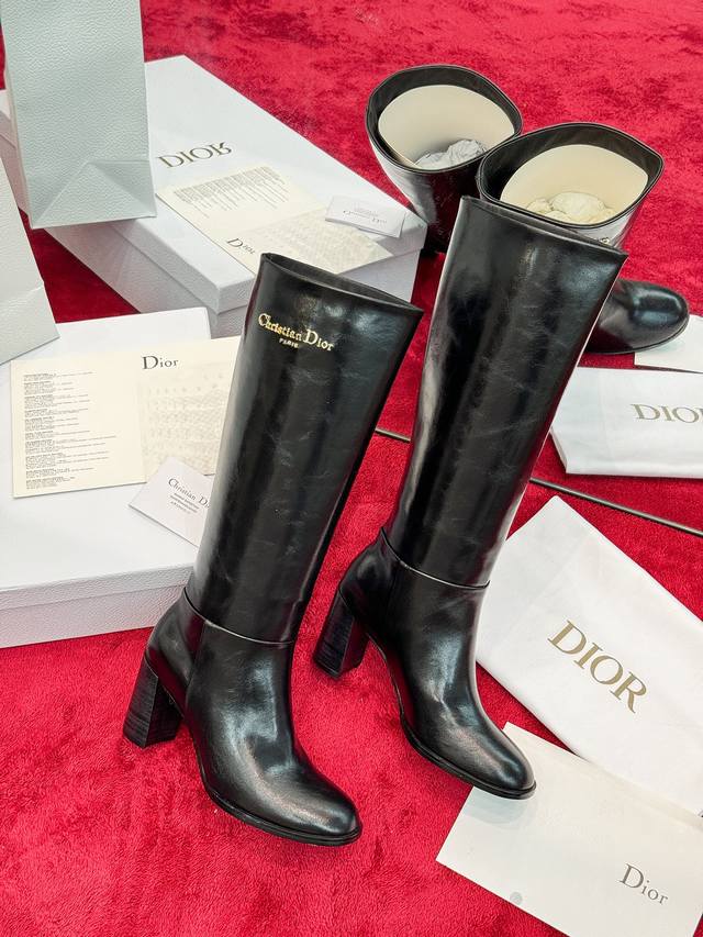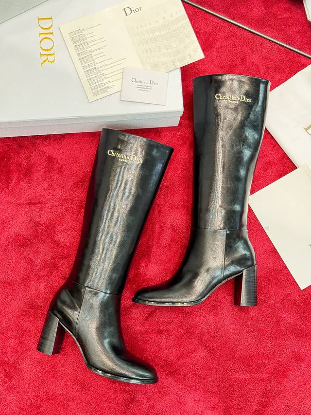 Factory Price: Dior 2025 Fall/Winter New D-Town Series Punk Style Chunky Heel Women's Boots, Celebrity Style, Cd Logo Hardware Buckle Motorcycle Knee-High Boots, Round Toe, Slip-on Rider High Boots. Material: Imported calfskin upper + water-dyed cowhide lining insole + Italian genuine leather outsole + original mold hardware buckle. Heel Height: 8cm. Size: 35-41 ( Standard size 40/41). Custom sizes are non-refundable and non-exchangeable.