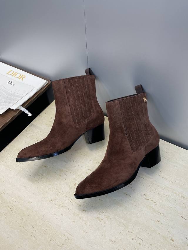 Dior 2025 Fall/Winter Runway Haute Couture Collection D-West Chelsea Women's Boots Cd Letter Logo Hardware Buckle Motorcycle Boots Celebrity Style Thick Heel Pointed Toe One-Foot Knight Ankle Boots Top Version on the Market