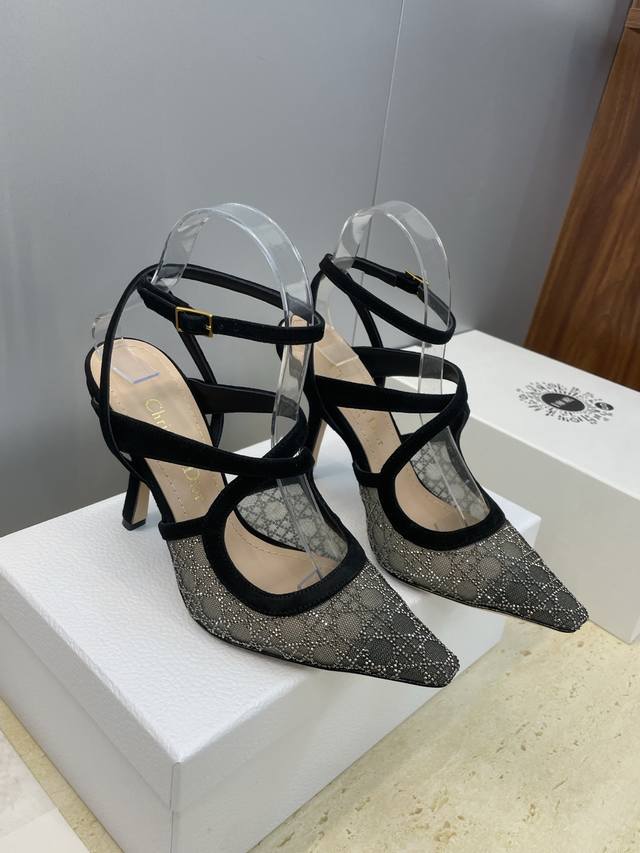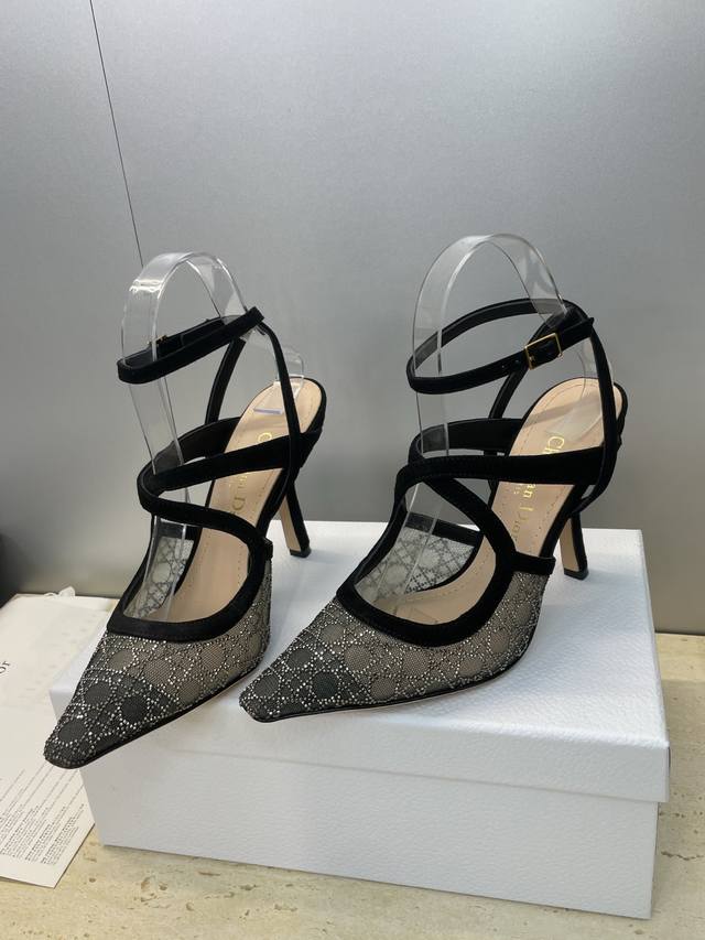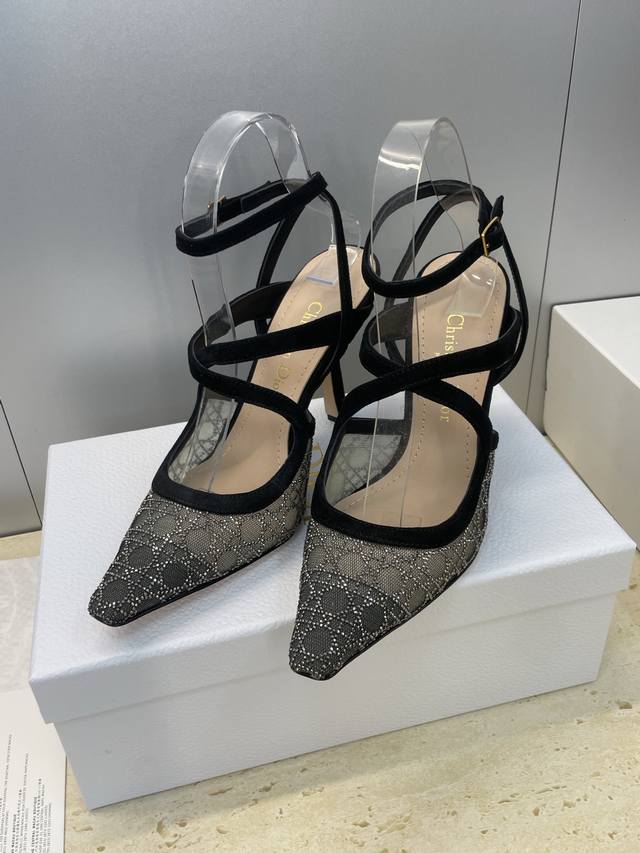 Factory price Ddd Dior 2026 Spring/Summer runway new Bling...Bling...Crystal shoes Capture series cross ankle strap women's shoes Cd letter logo rhinestone square toe rattan pattern high-heeled sandals Top-of-the-line high-end version Ddd Material: Original customized environmentally friendly breathable technical fabric with Australian rhinestones + water-dyed sheepskin insole + original molded hardware buckle + Italian genuine leather outsole Ddd Heel height: 9.5Cm Ddd Size: 33-44 33.34.40.41.42.43.44 Custom-made, no returns or exchanges DDD