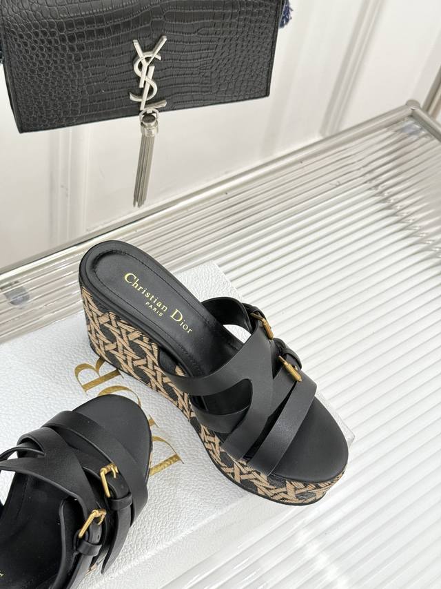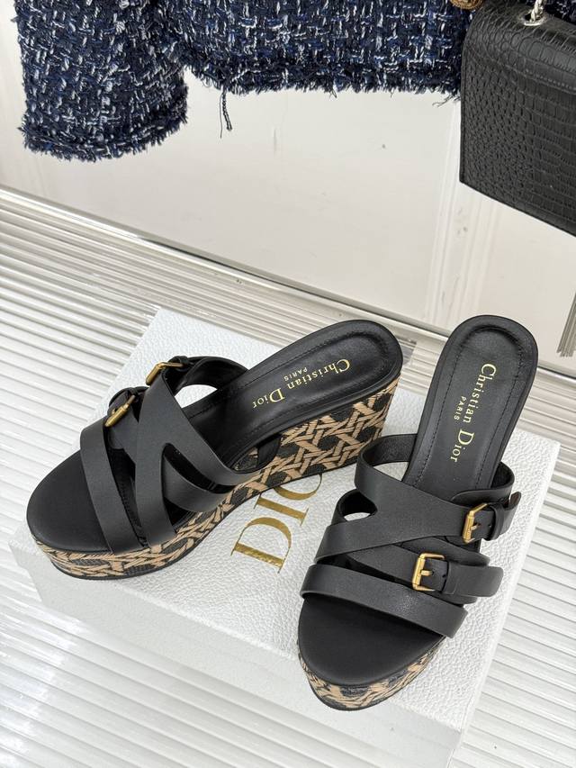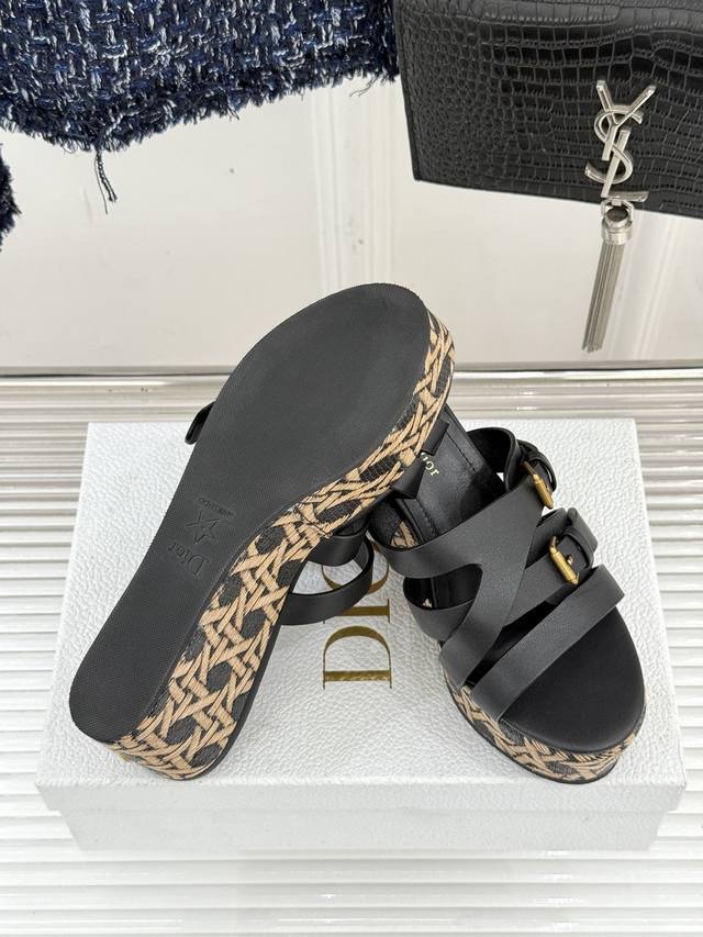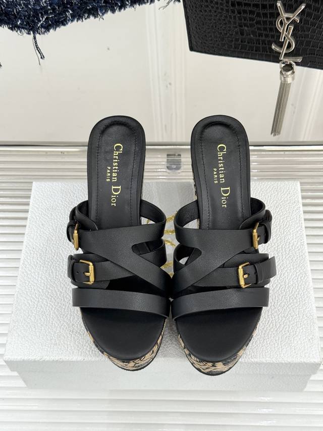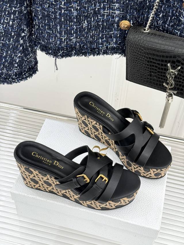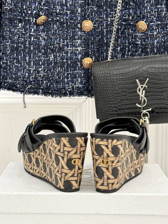 Factory Price: Dior 25Wf New Arrival Cd Buckle Hemp Rope Thick-Sole Wedge Slippers. It's time to kick off the lazy yet charming summer with a pair of slippers. The bamboo-woven pattern cleverly incorporates natural elements into this fashionable piece. Each texture evokes French romance and elegance. The thick-soled wedge heel is a masterstroke. It not only elongates your legs and instantly enhances your figure, but also provides a secure hold on gravel paths and beaches, making every step effortless and effortless. These slippers exude a uniquely refreshing summer vibe , ensuring you'll be the center of attention whether strolling on the beach or navigating the city streets. They're perfect for everyday commutes and weekend getaways.