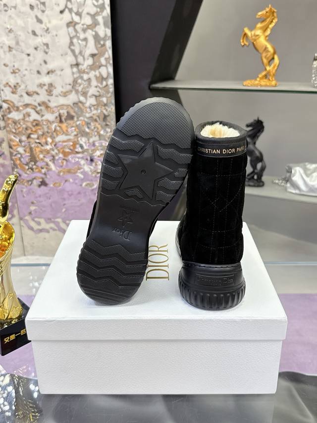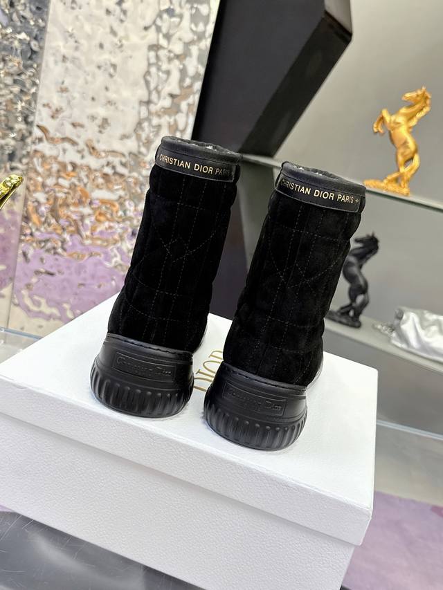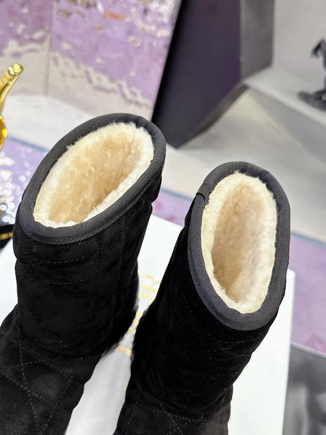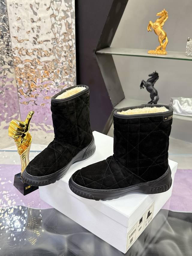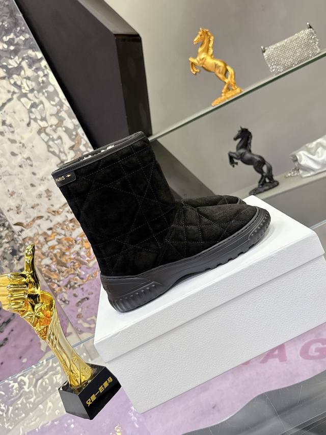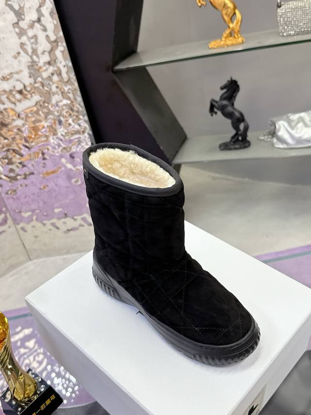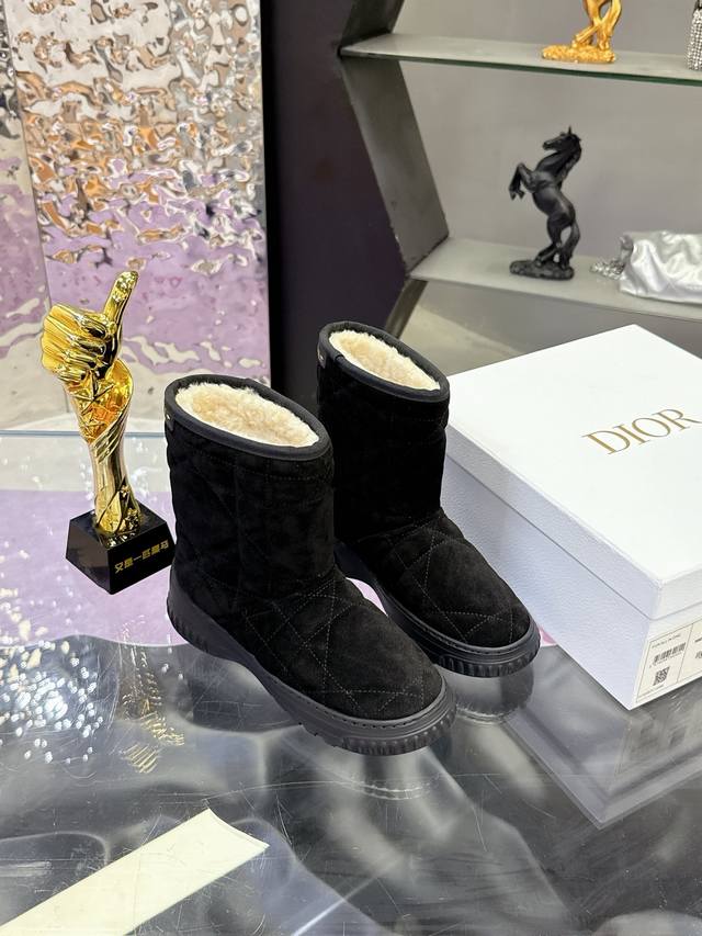 Factory Price: Dior Fall/Winter Snow Boots (Match-Slippers) These Dior ankle boots cleverly incorporate elements of the Dior Chez Moi collection. Made with Oblique printed velvet, featuring the "Christian Dior" logo, shearling, rope detailing, and an Eva sole. Suitable for indoor or outdoor wear, and can be paired with other Dior Chez Moi items. Material: Cowhide suede; Lining: Australian wool. Size: #35-41 (40/41 sizes are custom-made, no returns or exchanges).