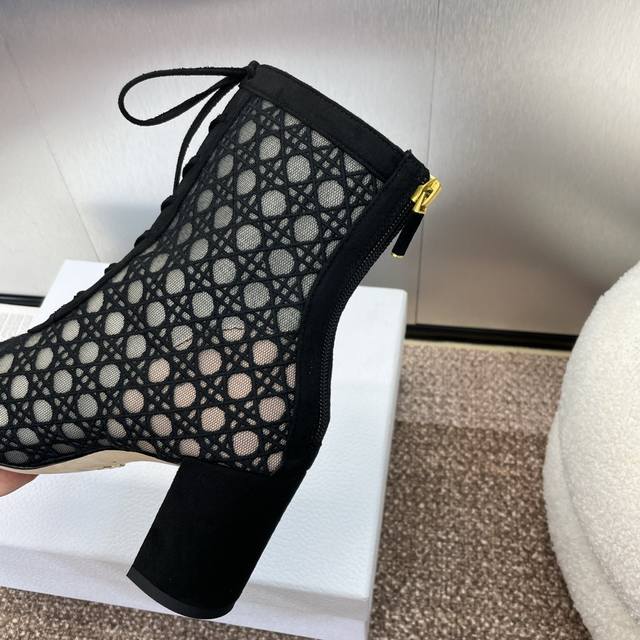 Factory price Ddd Dior Spring/Summer Haute Couture Collection Naughtily-D Women's Boots Cd Logo Cannage Pattern Jacquard Embroidery Elegant Ankle Sandals Celebrity Style Chunky Heel Square Toe Lace-up Tassel Roman Back Zipper Ankle Boots Top-tier version on the market Ddd Material: Imported suede upper with high-temperature water-soluble electro-embroidery technology + water-dyed sheepskin lining + Italian genuine leather outsole Ddd Heel height: 3.5cm 6.5cm Ddd Size: 35-39 Standard sizes 34, 40, 41, 42, 43 Custom orders are non-refundable DDD
