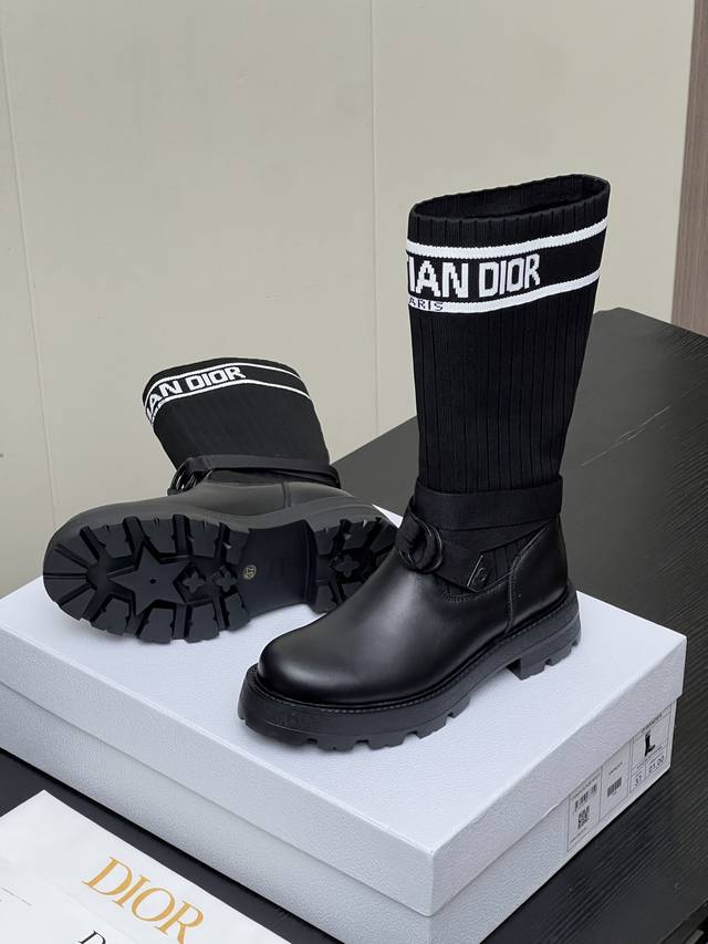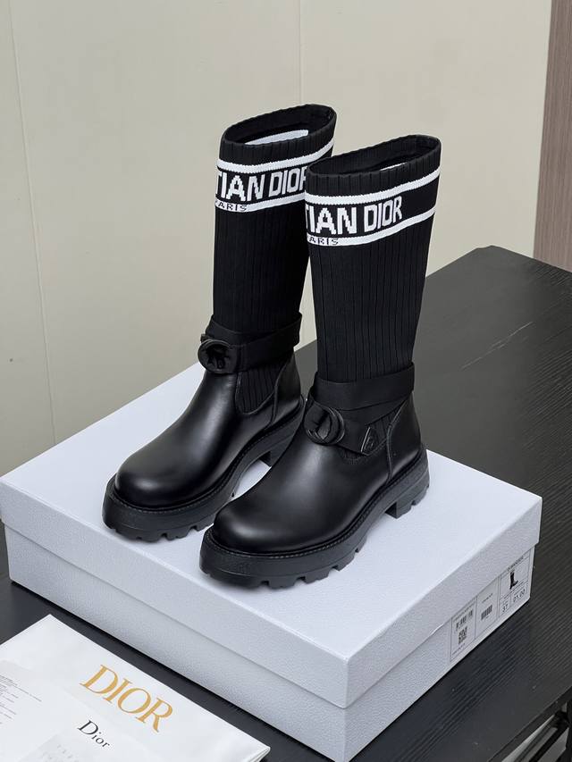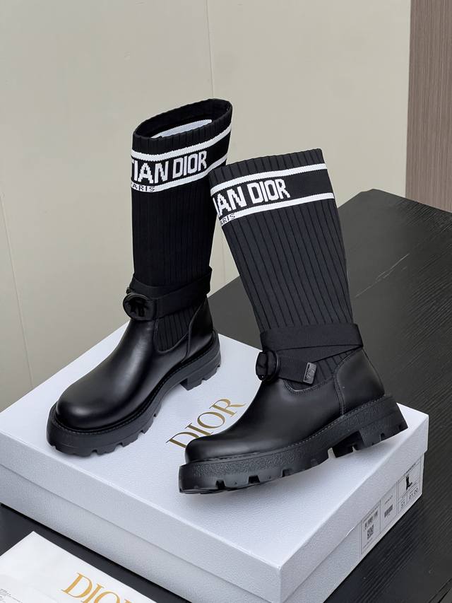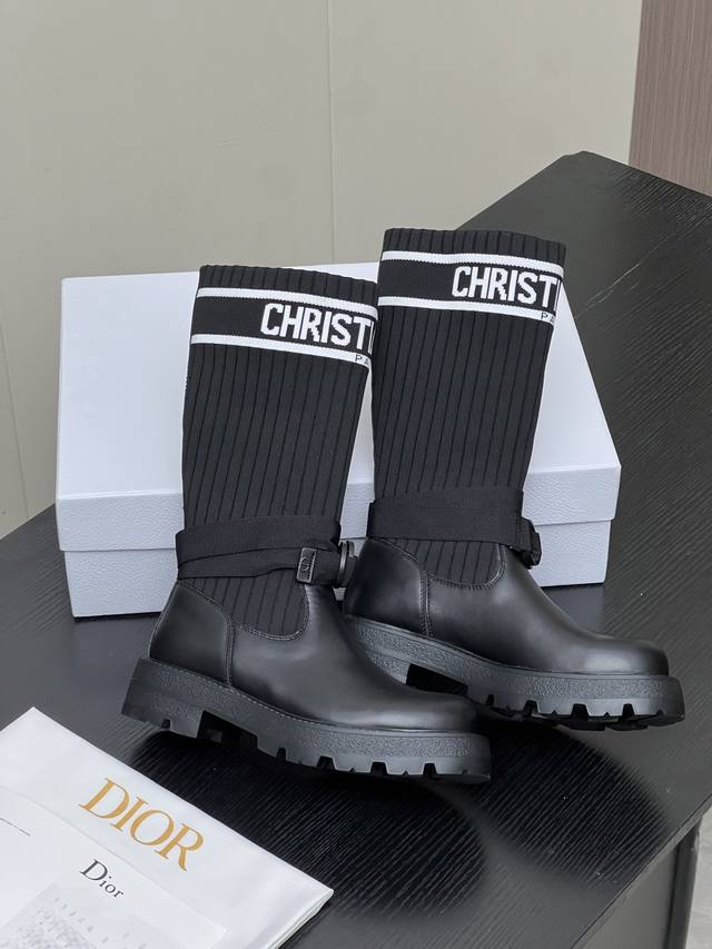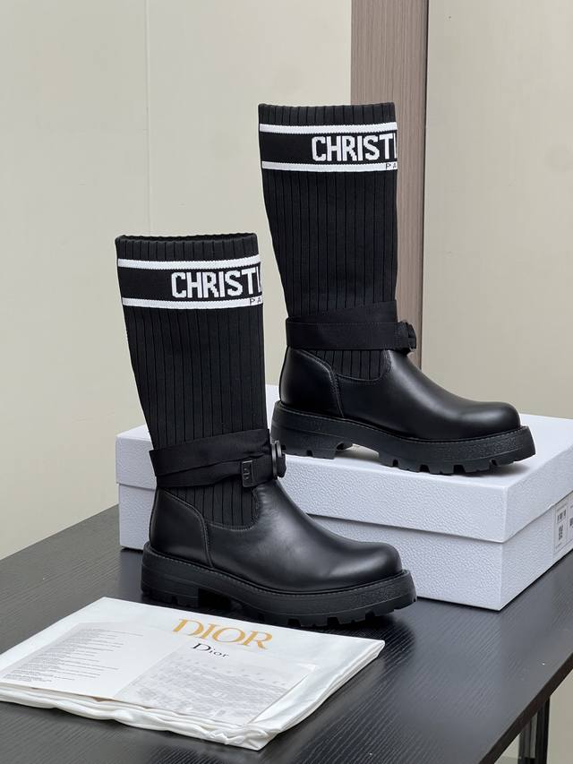 Factory Price (pp): Dior 2025 Autumn/Winter New Haute Couture Poster Style D-Major Embroidered Color-Blocked Letter Logo Round Toe Elastic Wool Mid-Calf Women's Boots Celebrity Style Low Heel Slip-On Knight/Military Boots DDD Material: Cowhide upper with latest imported technical flyknit fabric + water-dyed sheepskin lining + original mold Eva outsole DDD Heel Height: 3cm DDD Size: 35-39 Standard Size 40, 41 Custom orders are non-refundable DDD