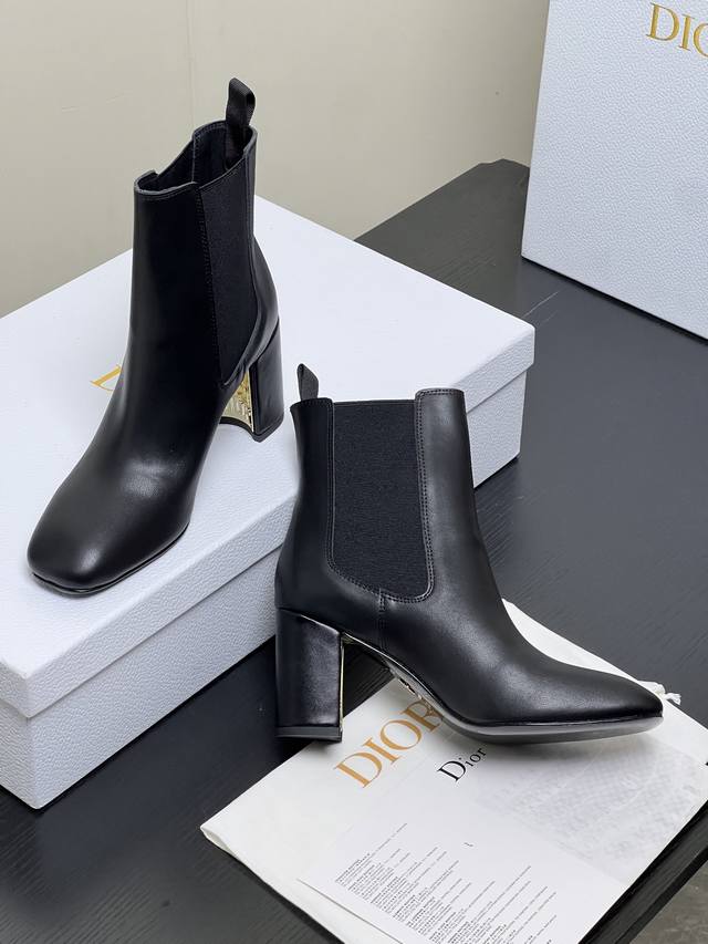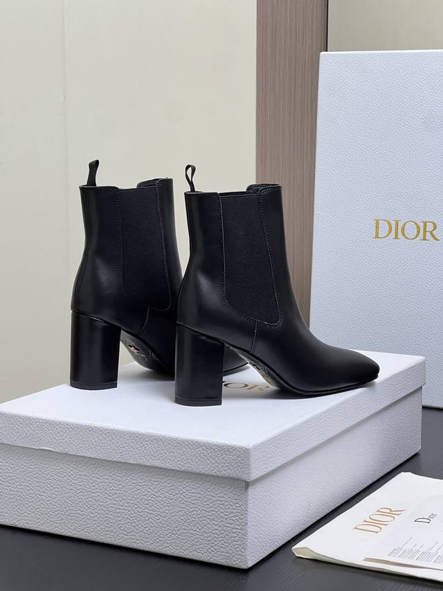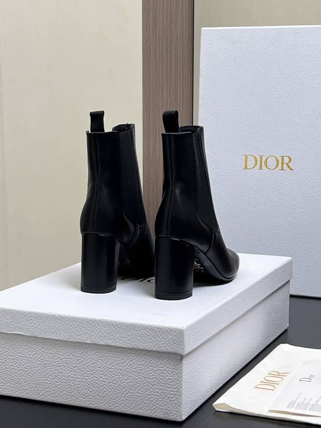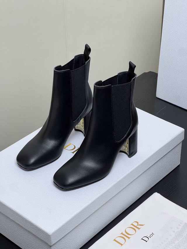 Factory Price (pp): Dior 2025 Fall/Winter New D-Art Series Chunky Heel Chelsea Boots, Celebrity Style, Cd Logo Hardware Buckle Motorcycle and Ankle Boots, High Heel Round Toe Elastic Short Boots. Material: Imported calfskin upper + water-dyed cowhide lining insole + Italian genuine leather outsole. Heel Height: 8cm. Size: 35-43 (Standard size 40, 41). Custom orders are non-refundable.