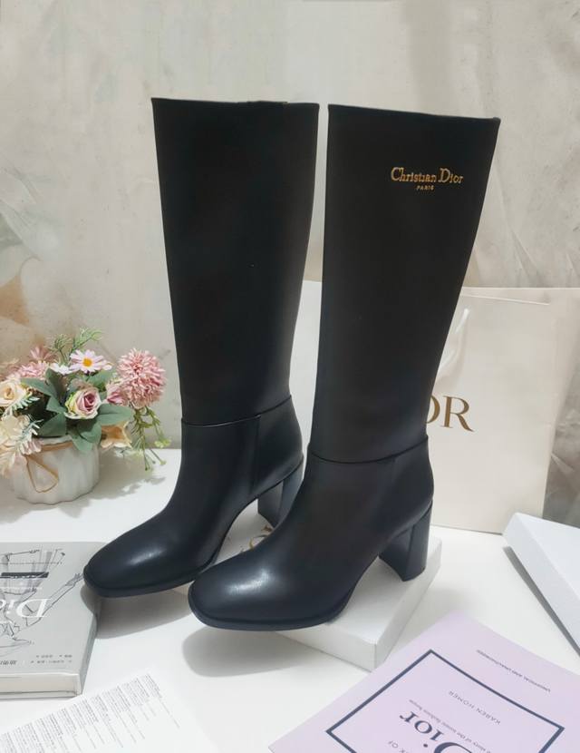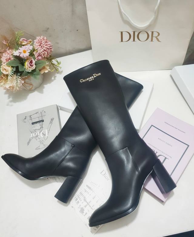 The Dior Empreinte heeled ankle boot is a stylish classic. Crafted from black cowhide leather, it features a strap accented with a gold-finished "Cd" buckle. With an 8cm heel, it pairs beautifully with this season's pieces for a sophisticated look.