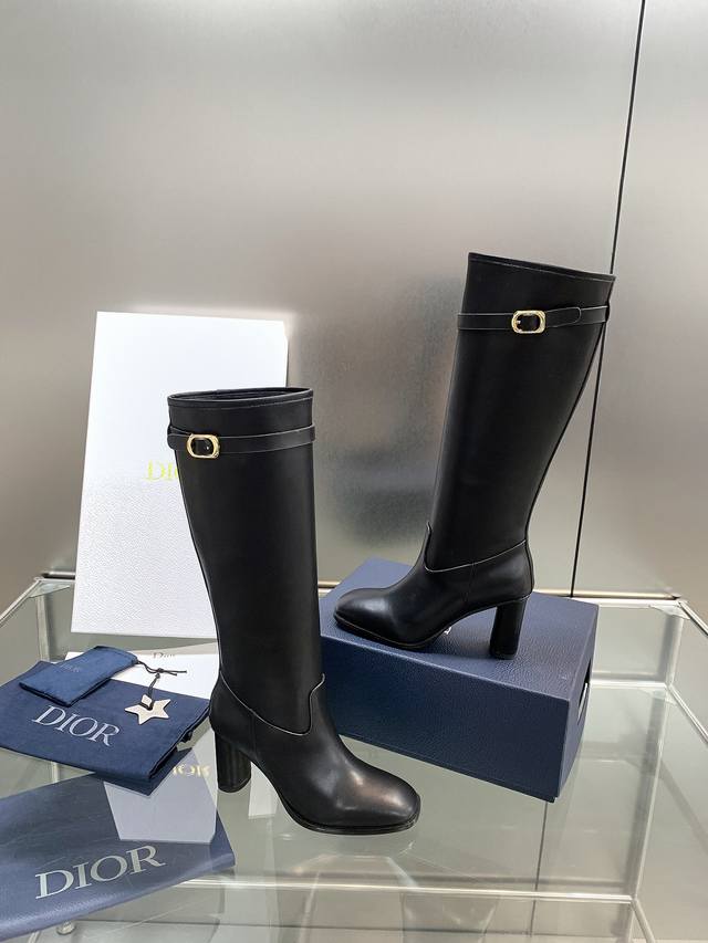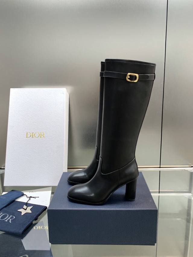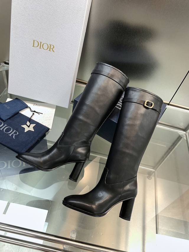 Factory Price (pp): Top-quality leather sole. Dior Empreinte heeled ankle boots, a classic and stylish piece. Crafted from black calfskin leather, featuring a strap and a gold-tone "Cd" buckle. The 8cm heel allows for versatile styling with this season's pieces. Adjustable sliding buckle strap with "Cd" logo. Leather sole adorned with Christian Dior's lucky star symbol. Sizes 35-42, sizes 40, 41, and 42. No returns or exchanges.