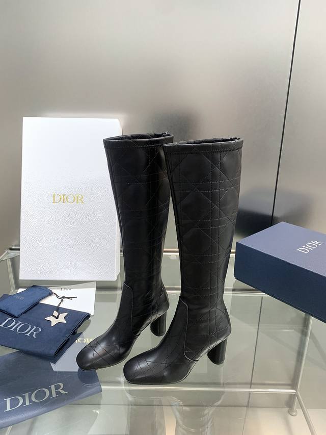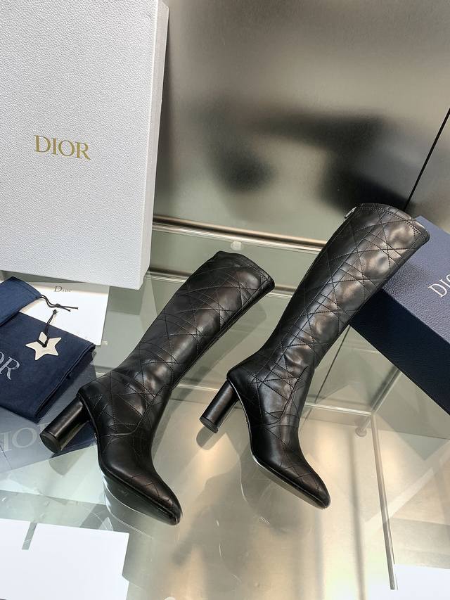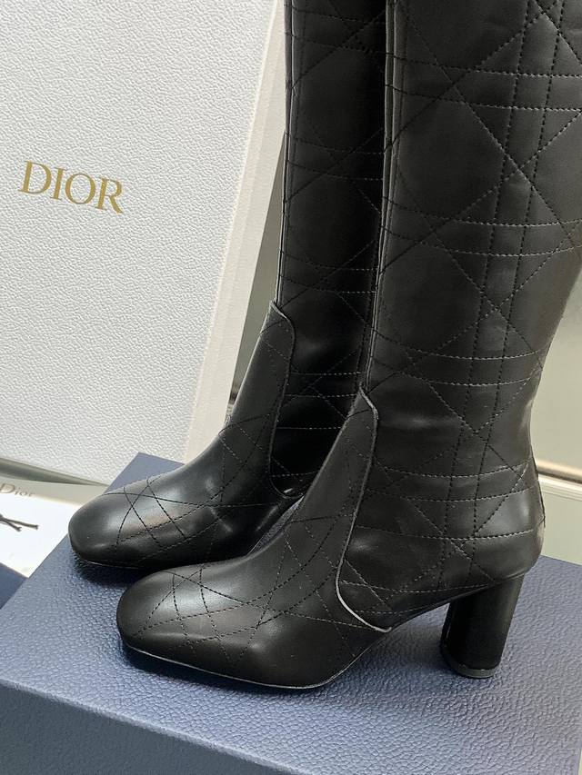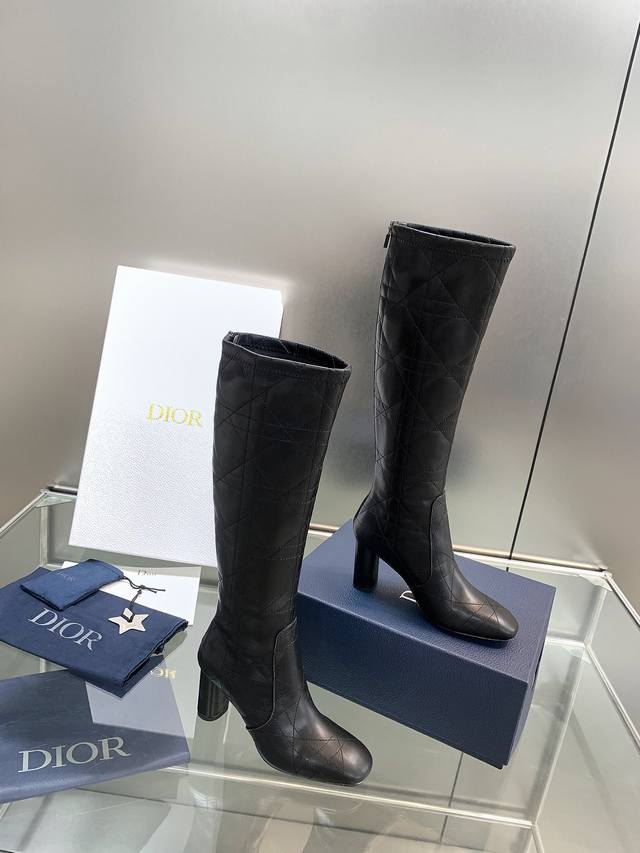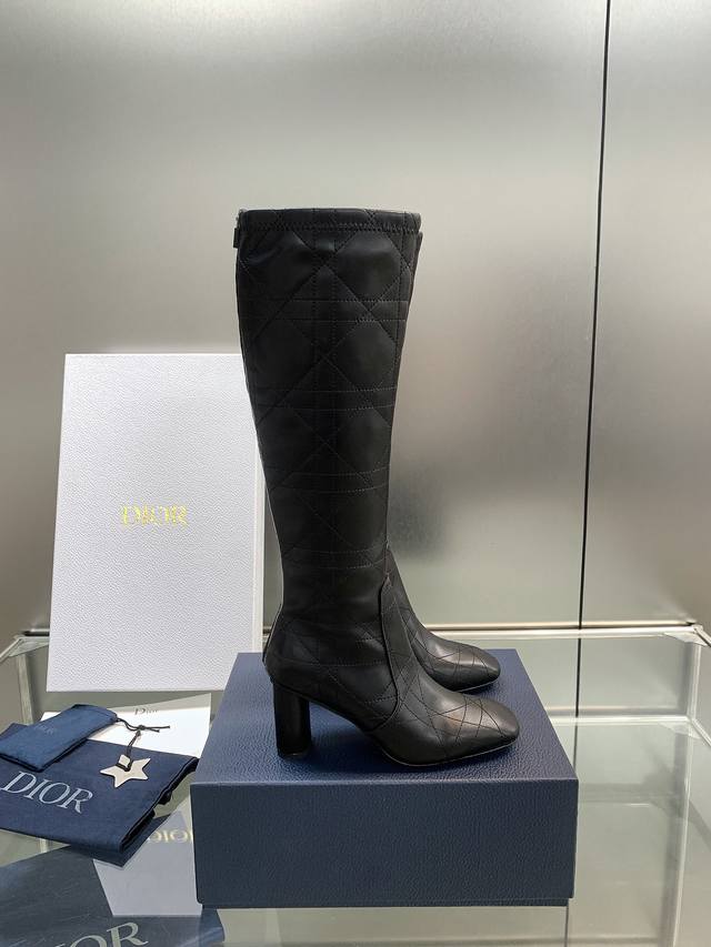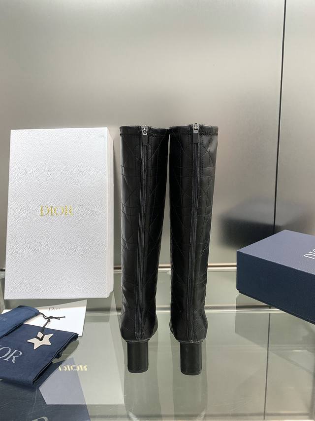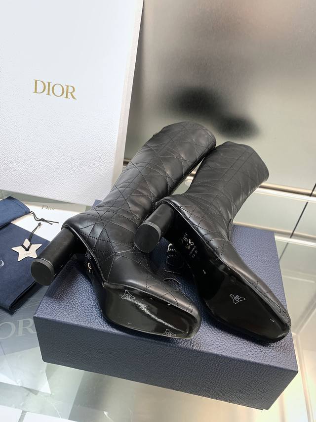 Factory Price (pp): Top-quality leather sole DDD D-Shadow heeled boots, elegant and stylish. Crafted from black leather-effect stretch fabric, adorned with an oversized cannage pattern, paying homage to classic elements in Maria Grazia Chiuri's designs. Features an 8cm cylindrical heel and a signature brand detail zipper closure at the back, showcasing sophisticated charm. DDD Signature brand detail zipper closure at the back DDD Leather sole adorned with Christian Dior's lucky star symbol DDD Sizes 35-42. Sizes 40, 41, and 42 are non-refundable and non-exchangeable DDD