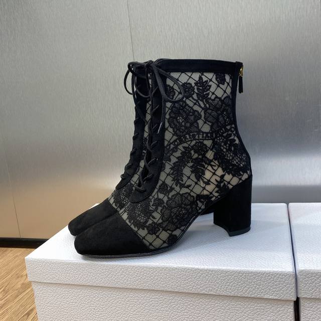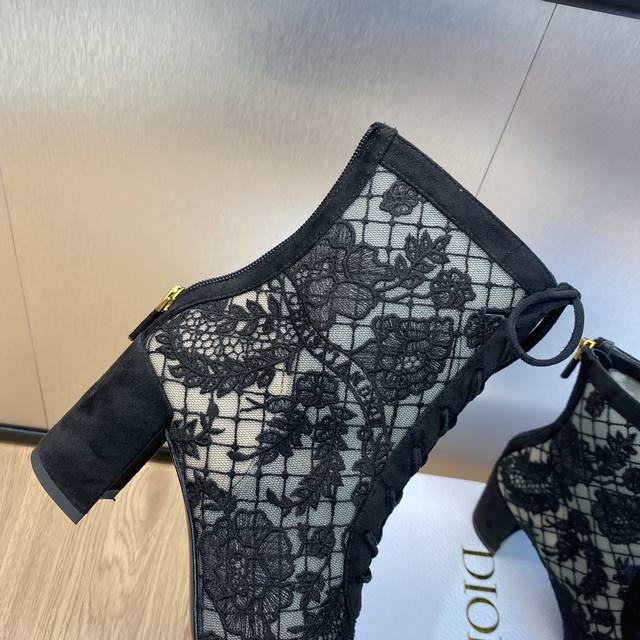 Factory Price: Short Boots Ddd Dior Spring/Summer Haute Couture Collection Naughtily-D Women's Boots Cd Logo Roses All-over Jacquard Embroidery Elegant High-top Boots Celebrity Style Chunky Heel Square Toe Lace-up Tassel Roman Style Back Zipper Short Boots Top-tier Version on the Market Ddd Material: Imported suede upper with high-temperature water-soluble electro-embroidery technology + water-dyed sheepskin lining + Italian genuine leather outsole Ddd Heel Height: 6.5cm Ddd Size: 35-39 Standard Sizes 34, 40, 41, 42, 43 Custom orders are non-refundable DDD