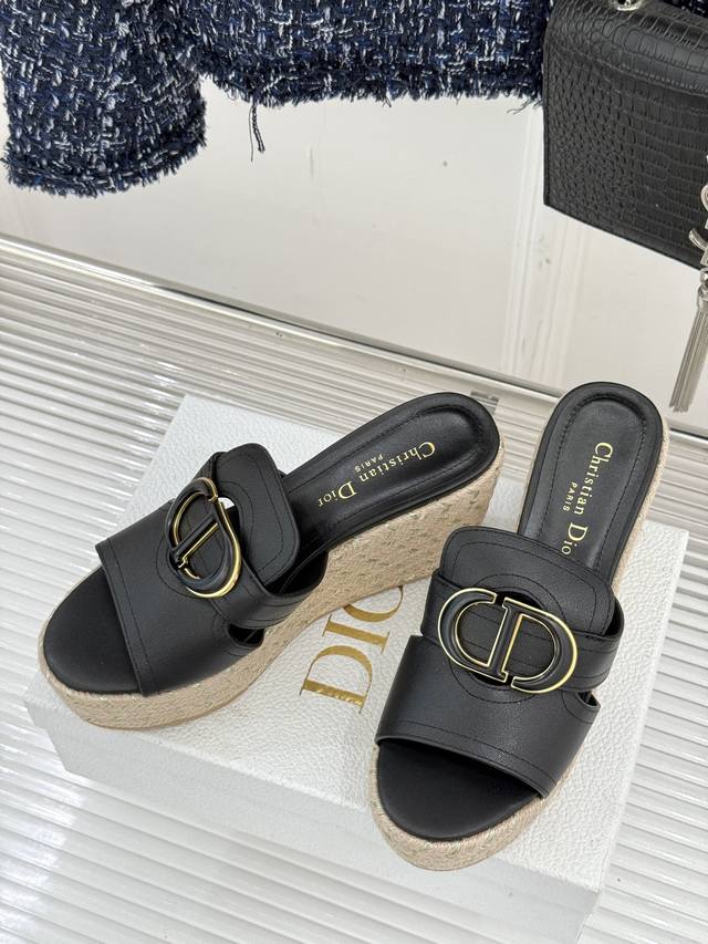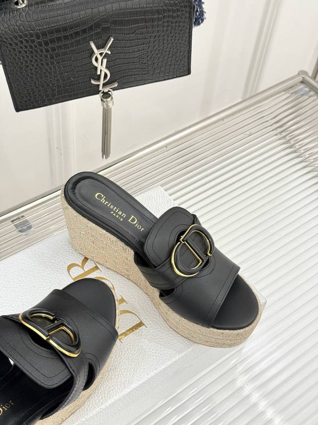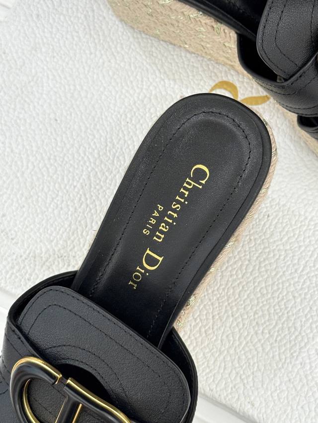 Dior 25Wf New Cd Buckle Hemp Rope Thick-Sole Wedge Heel Slippers