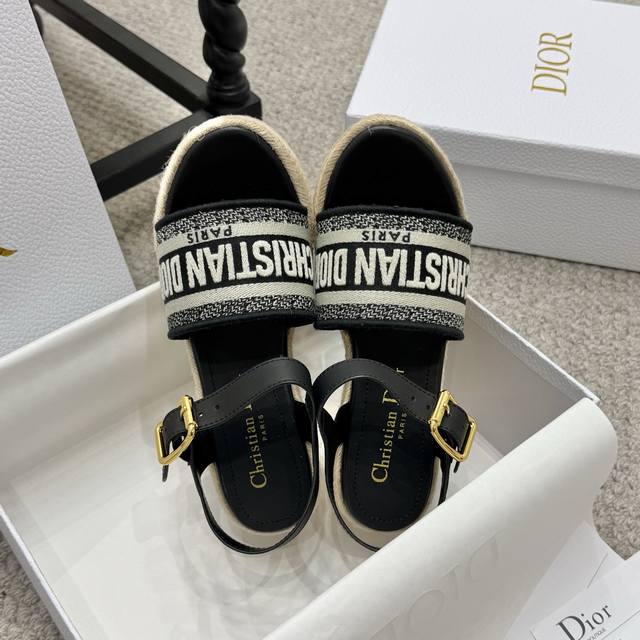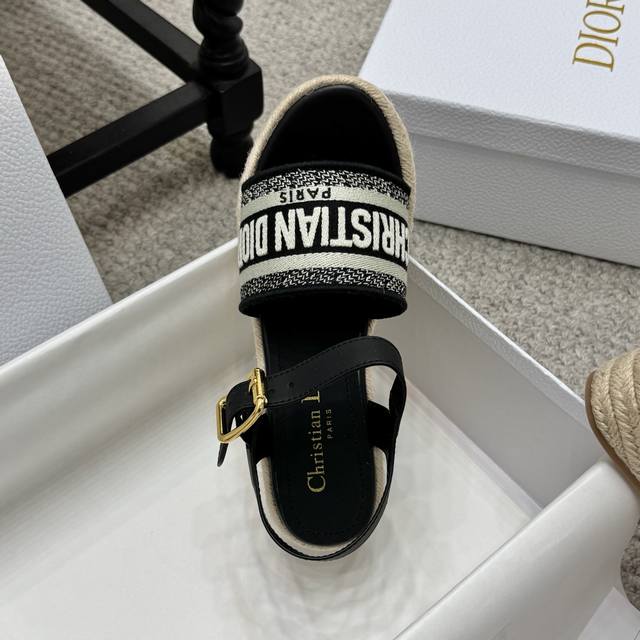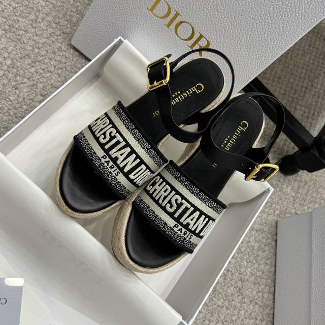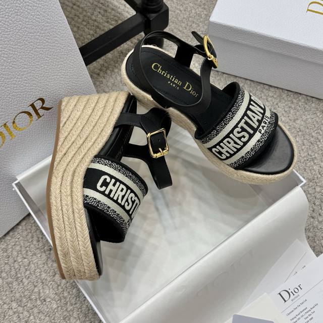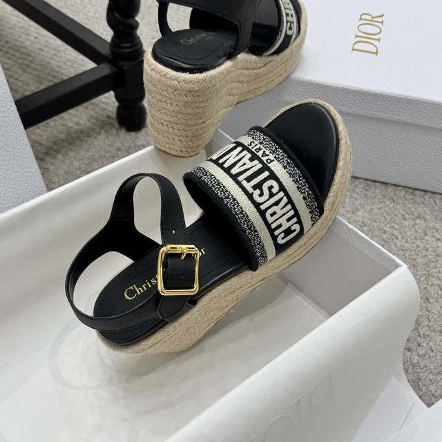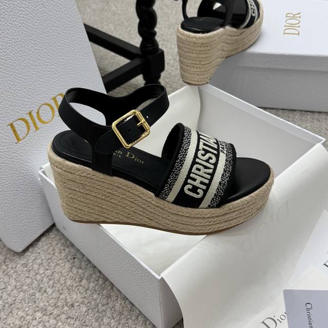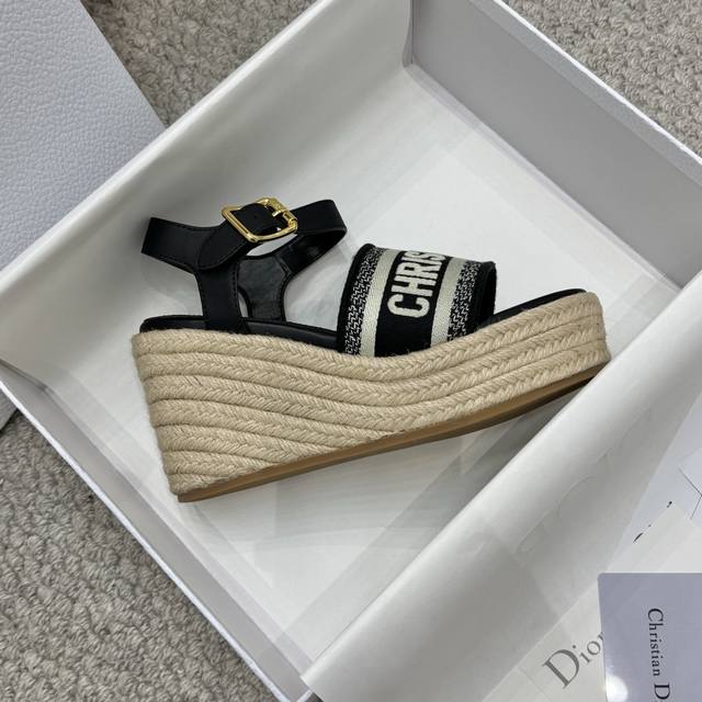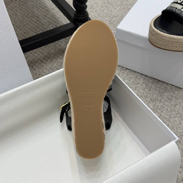 Height-increasing Dior 25Ss Summer High-Version Sandals. Simple and super versatile. Perfectly luxurious on the feet and can be paired with any spring/summer outfit. Extremely comfortable! Material perfectly replicated from the original. Original disassembled mold. Material: Original custom material. Lining: Original custom sheepskin. Insole: Original custom sheepskin. Outsole: Original woven wedge outsole. Heel height: 9.5cm. Packaging: Original full packaging. Sizes: 35-41.