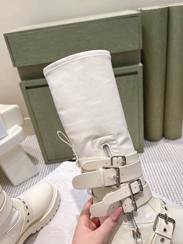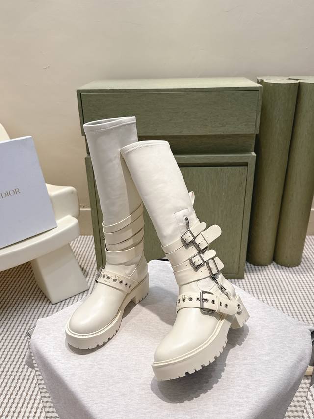 High-quality Dior 2025S new mid-calf/high-calf brogue boots. A new addition to the Fall/Winter 2025 ready-to-wear collection, showcasing haute couture glamour. Features a black rubber-effect calfskin barrel design, accented with silver zipper details on the sides for added sophistication. The thick yet lightweight notched sole adds a touch of glamour to this season's casual looks. Upper: Calfskin Lining: Cowhide Heel Height: 4.5cm Outsole: Original mold TPU Size: 35-41 (40 & 41 are custom-made and non-refundable)