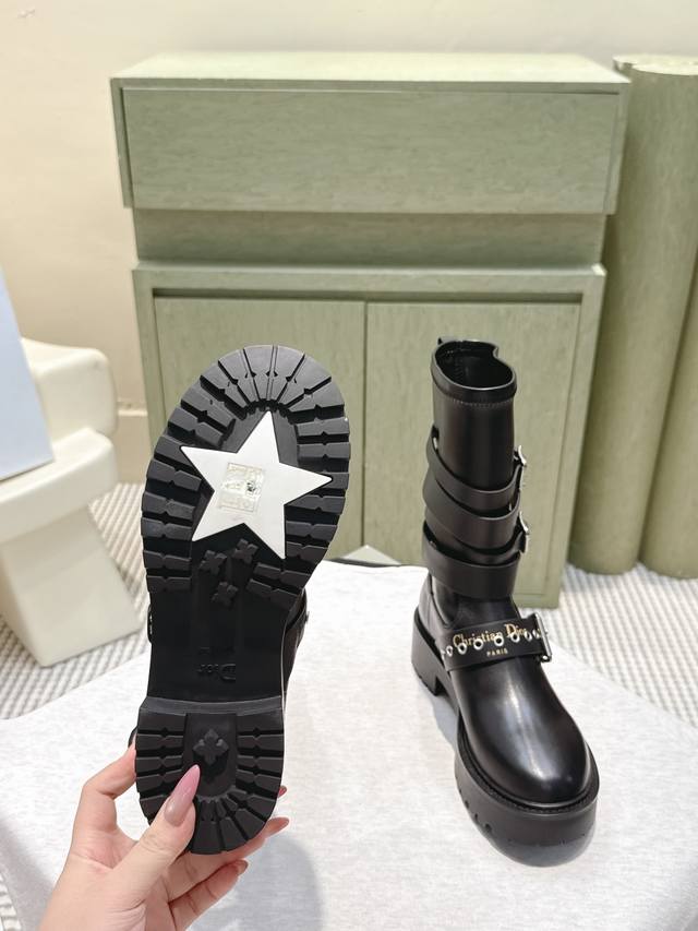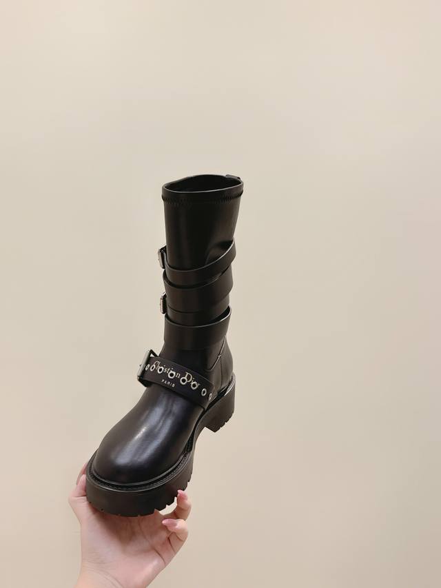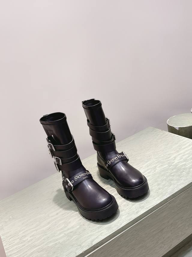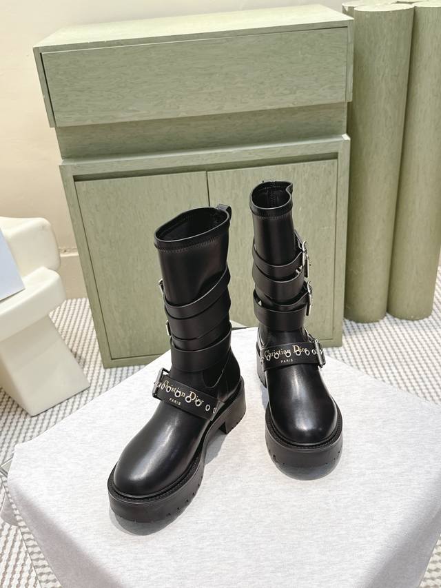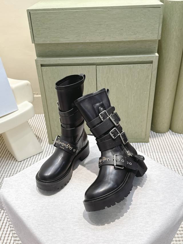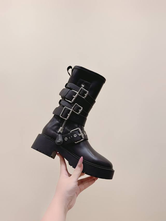 High-quality Dior 2025S new mid-calf/high-calf brogue boots. From the Fall/Winter 2025 ready-to-wear collection , showcasing haute couture glamour. Features a black rubber-effect calfskin barrel design, accented with silver zipper details on the sides for added style. A thick yet lightweight notched sole completes the look, adding a touch of sophistication to this season's casual styling. Upper: Calfskin Lining: Cowhide Heel Height: 4.5cm Outsole: Original mold TPU Size: 35-41 (40 & 41 are custom-made and non-refundable).