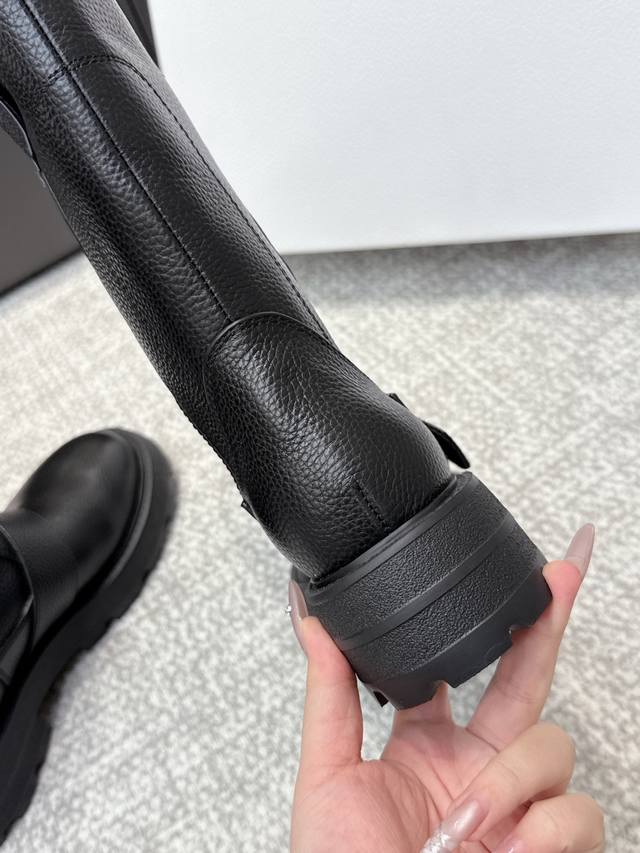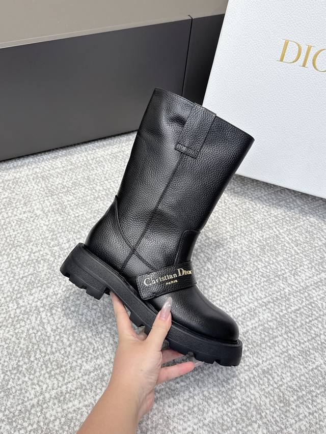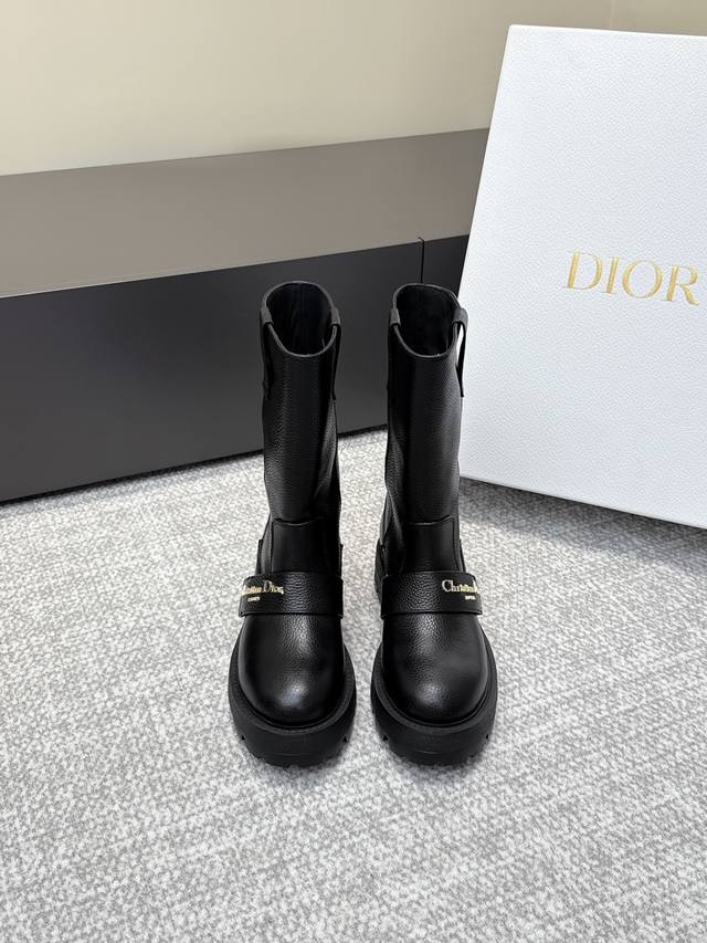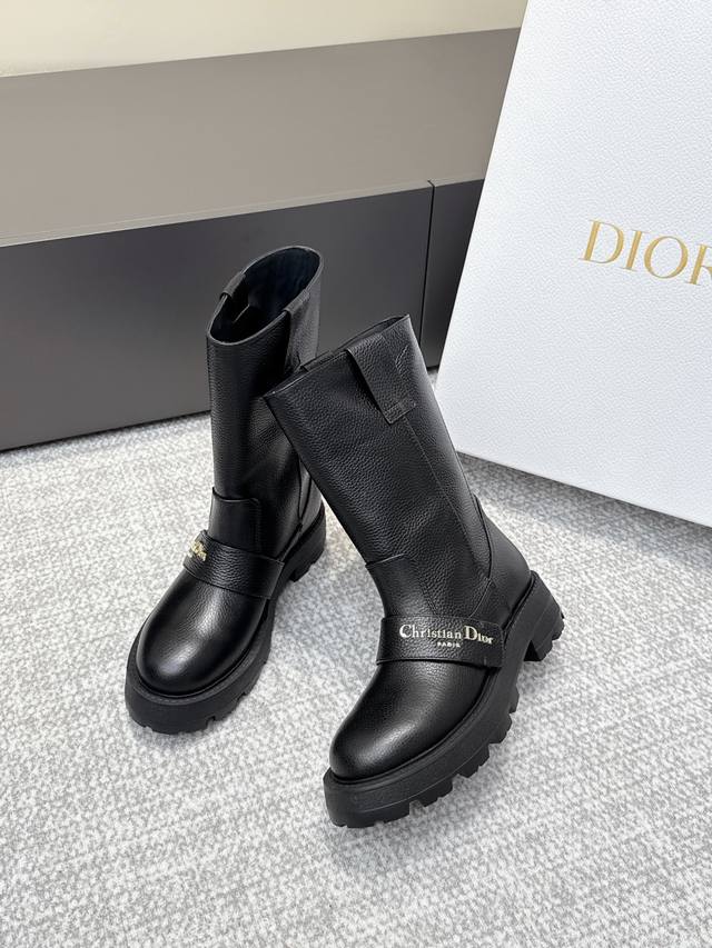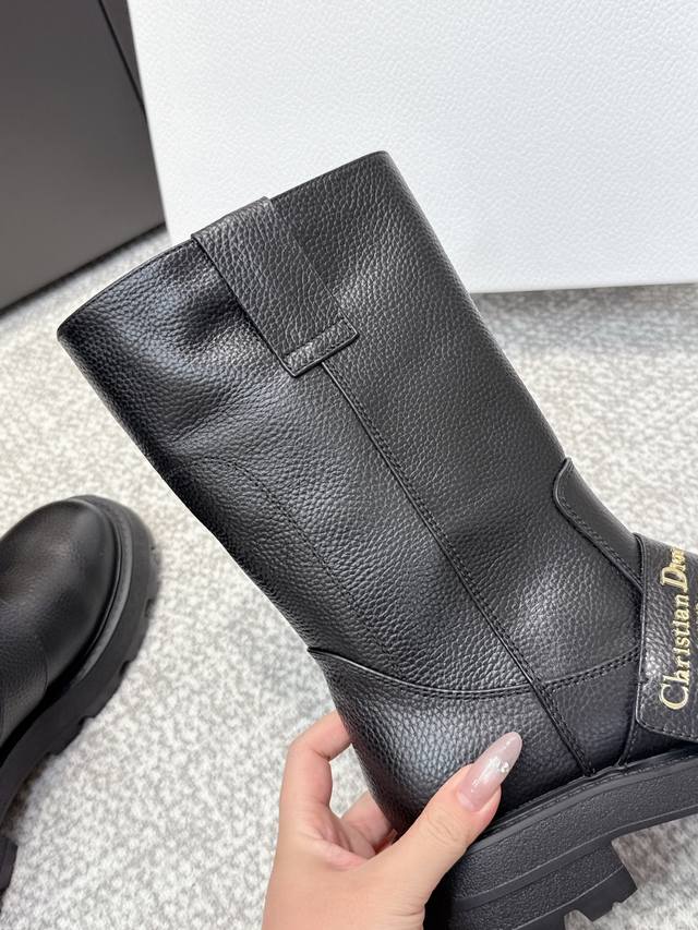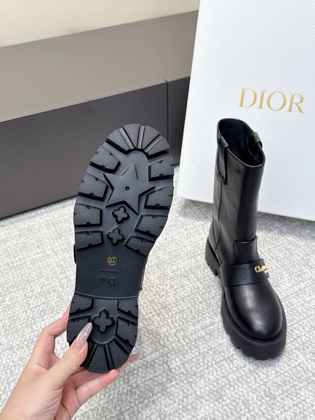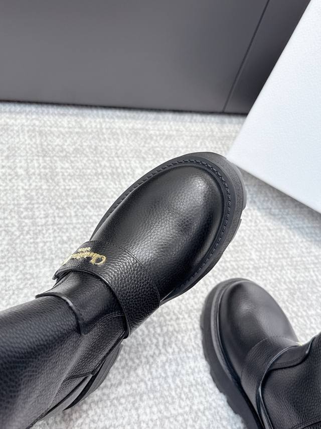 High-quality Dior 25 boots, newly unveiled at the Dior Fall/Winter ready-to-wear collection, inspired by the elegance and sophistication of the 1960s. Crafted from black patent leather calfskin and leather-effect stretch fabric, the upper is adorned with gold-plated studs of various sizes, continuing the classic Mary Jane design. Decorative straps are embellished with gold-plated Dior logo beads, inspired by the iconic Dior Tribales earrings. Material: Stretch lambskin + patent leather; Outsole: Italian genuine leather; Size: 35-39; Size 40 (custom orders, no returns or exchanges).