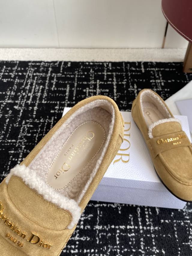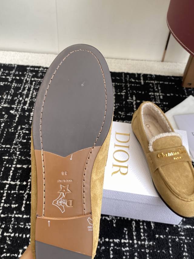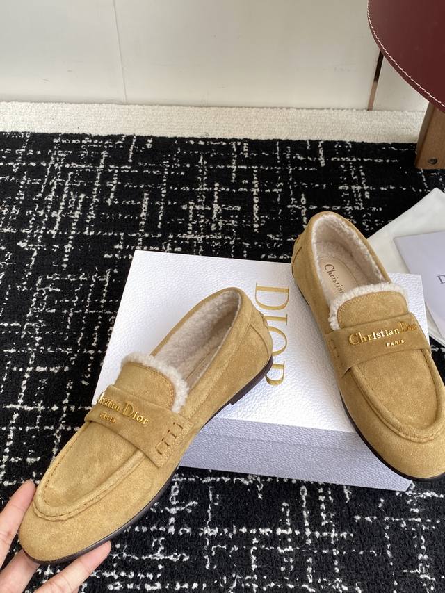 High-quality Dior 25 Ss Fall/Winter new wool loafers. Top quality, perfect fit, a classic retro-chic piece. Created at the first major show of Paris Fashion Week. Inspired by Dior's lead designer, the design is cleverly combined into a perfect shoe shape. Exquisite carving adds a touch of luxury, and the brand's buckle adds a fashionable touch! Can be worn with the heel down, two stylish ways to wear, two different moods. Upper: Suede; Lining: Wool; Sole: Genuine leather. Size: #35-41 (40, 41) - Custom orders are non-refundable.