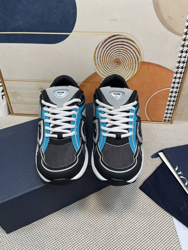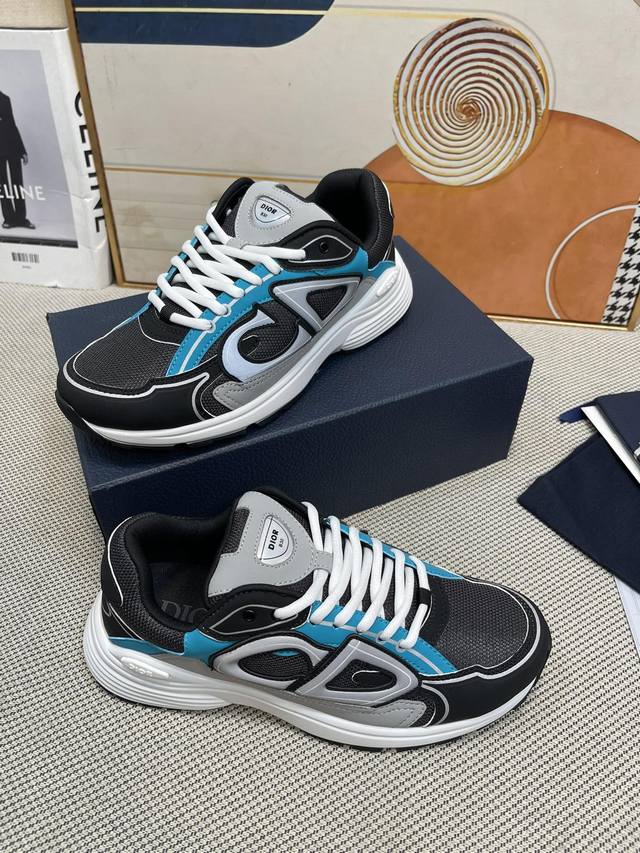 High-quality Dior B30 modern sneakers, celebrity style, thick-soled, lace-up, c