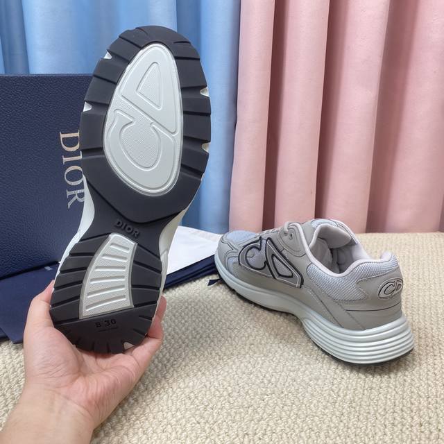 High-quality Dior B30 modern sports celebrity style platform lace-up casual running shoes, versatile, 3D logo, glow-in-the-dark color-blocked dad shoes, top-of-the-line high-end version. Material: Imported custom silk cowhide splicing mesh fabric. Lining: Eco-friendly polyester blend breathable lining. Outsole: Original mold TPU outsole. Size: Women's 35-40, Men's 39-45, 45.46. Custom orders, no returns or exchanges.