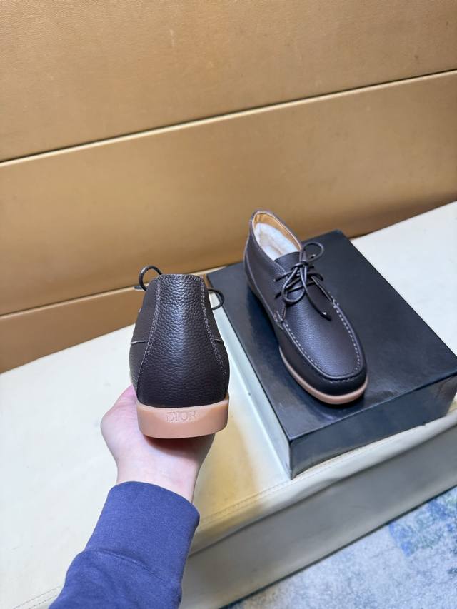 High-quality Dior shoes with wool lining, original Italian import! Men's high-top business casual leather shoes, original imported calfskin upper, exquisite texture, gentlemanly style, warm genuine wool lining, top-quality Italian original rubber outsole, first-class workmanship, top-quality feel! Sizes: 39-44, 38.45 custom-made DDD