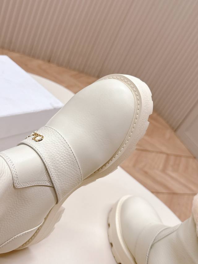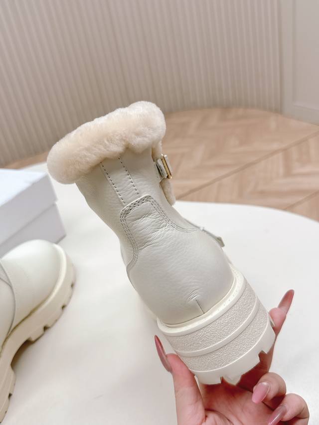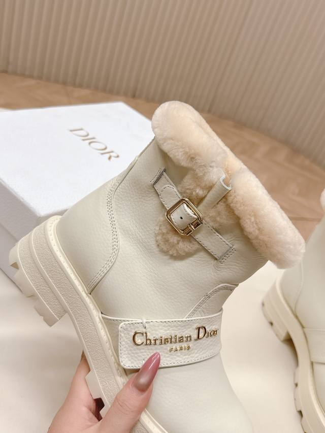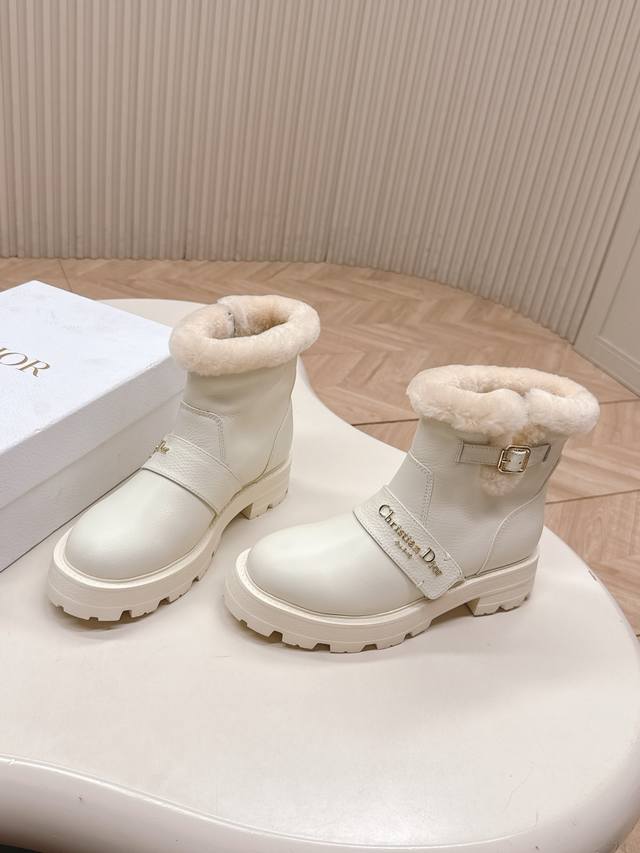 High-quality Dior slip-on fashion wool ankle boots, Dr. Martens boots, winter fashion, warm, full cowhide upper, thickened lamb's wool.