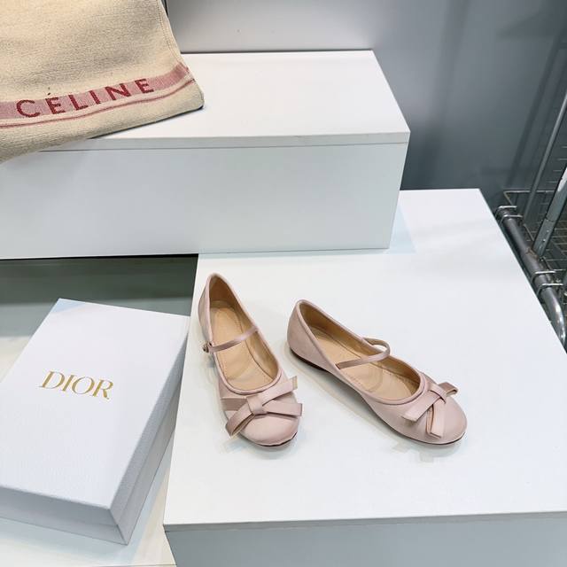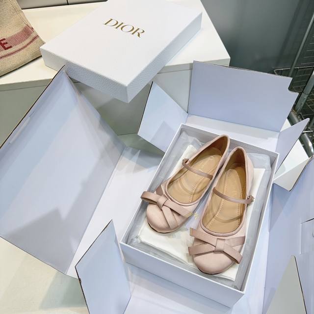 High-quality factory direct! Top-quality original single channel, synchronized with official website, boxed with a box. Dior 25Ss Autumn/Winter New Arrival, Bow-tie Silk Flats and Chunky Heel Ballet Flats. New Dior silk bow-tie single shoes, so cute! These ballet flats feature the classic Dior bow element, with ribbed bows and exquisite bow design with Dior details! A must-have for petite women, extremely comfortable. The upper is made of imported silk satin, the insole is made of sheepskin, and the outsole is made of imported Italian genuine leather. Sizes: 35-42, 40, 41, 42. No returns or exchanges. Comes with original packaging.