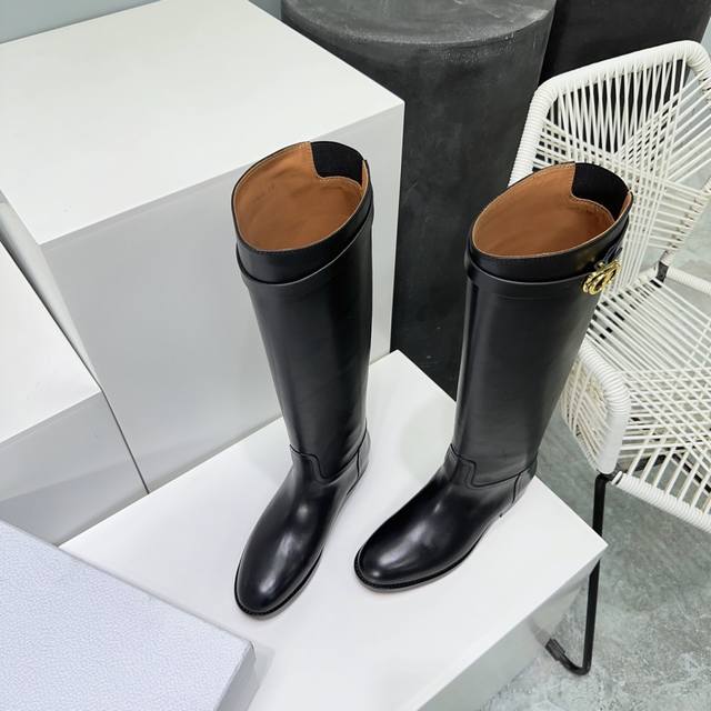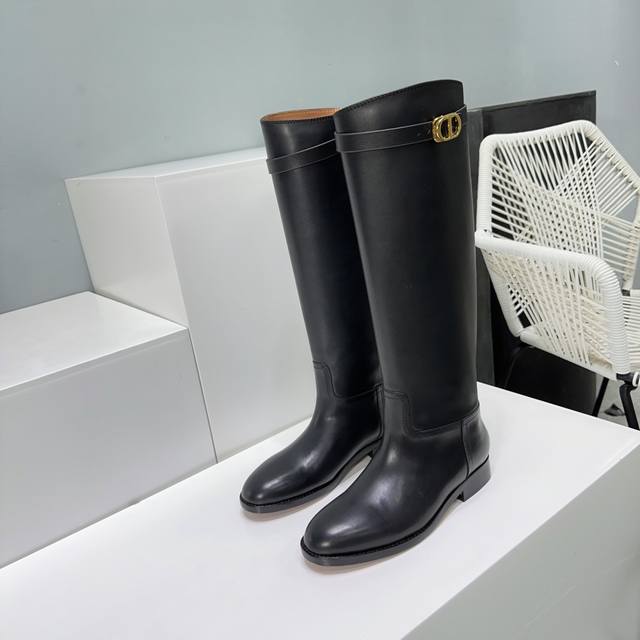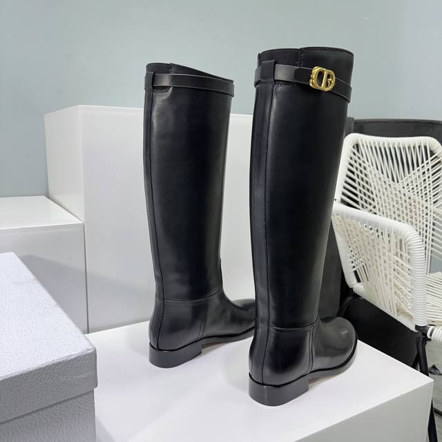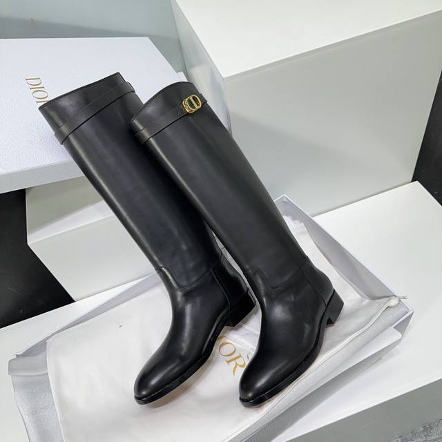 High-quality factory! Top quality! Dior 25Ss Fall/Winter new classic Cd buckle high-top riding boots! Original last mold, exclusive custom original ultra-fine top-layer calfskin, imported leather that is supple and thick, with a superb feel against the skin! Overall matte texture with a subtle sheen! Adorned with original custom hardware buckles! Original boot shape is super flattering and makes legs look straight! The upper is made of original custom calfskin, the insole is made of original custom water-dyed cowhide, and the outsole is made of imported Italian thickened genuine leather. Sizes: 35-40. Size 40 is custom-made and non-refundable. Comes with original packaging.