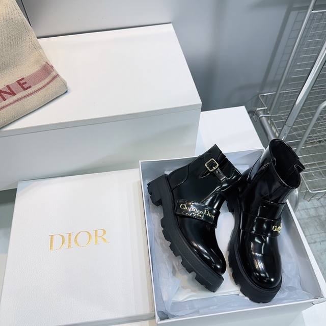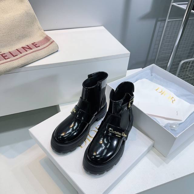 High-quality factory! Top-quality Dior | Dior Fall/Winter 2025 new arrival, Dilraba Dilmurat style chunky heel platform round toe side zipper ankle boots, heavy-duty Martin boots! The