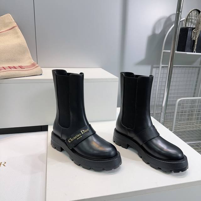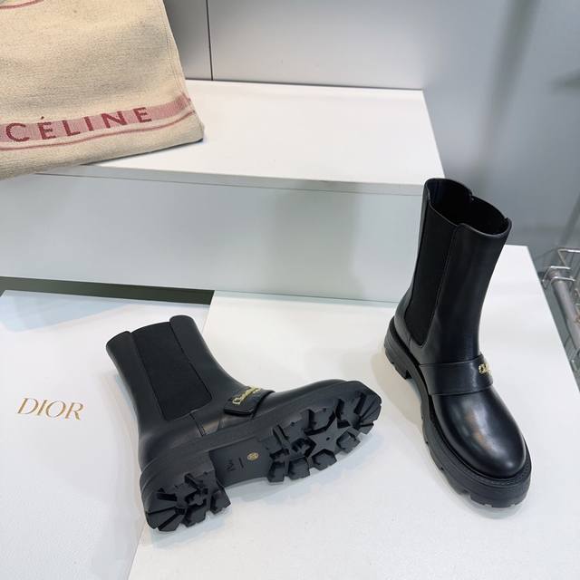High-quality factory! Top-quality Dior Fall/Winter 2025 new straight-leg elastic slip-on ankle boots! Chunky heel, platform, round toe Martin boots! The