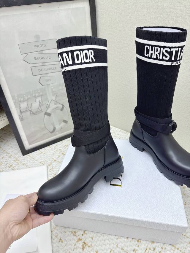 High-quality factory version DDD Dior Dior Cd 2025 Fall/Winter long boots Dior DDD Cd 2025 Fall/Winter latest color haute couture poster style D-Major embroidered color-blocked letter logo round toe mid-calf flyknit riding boots DDD Material: Original cowhide, original mold flyknit lining: Original lining Sole: Mold-made sole DDD Size: 35-41 40 41 Custom orders are non-refundable DDD