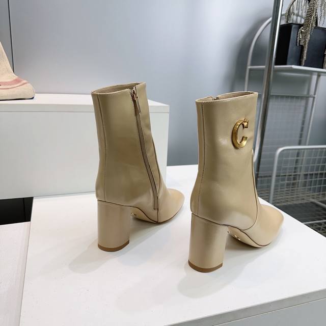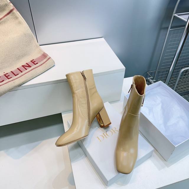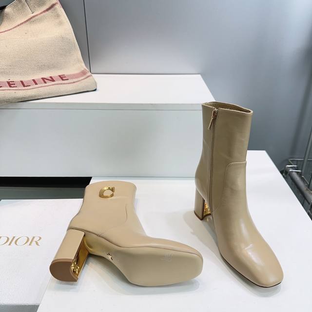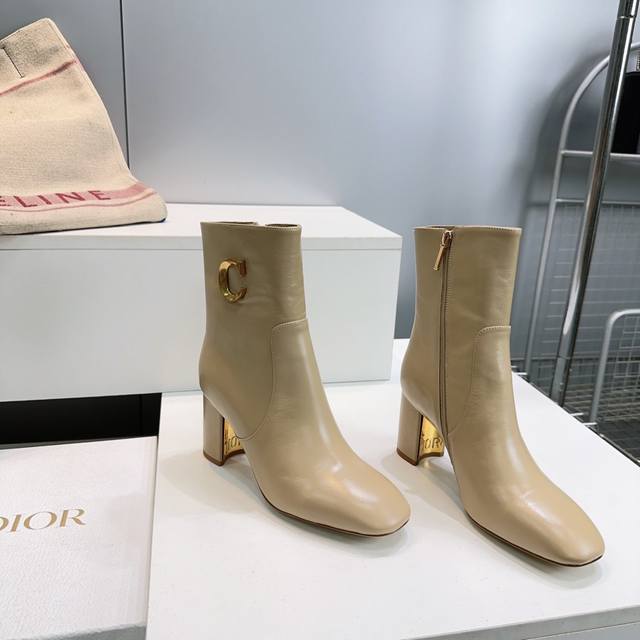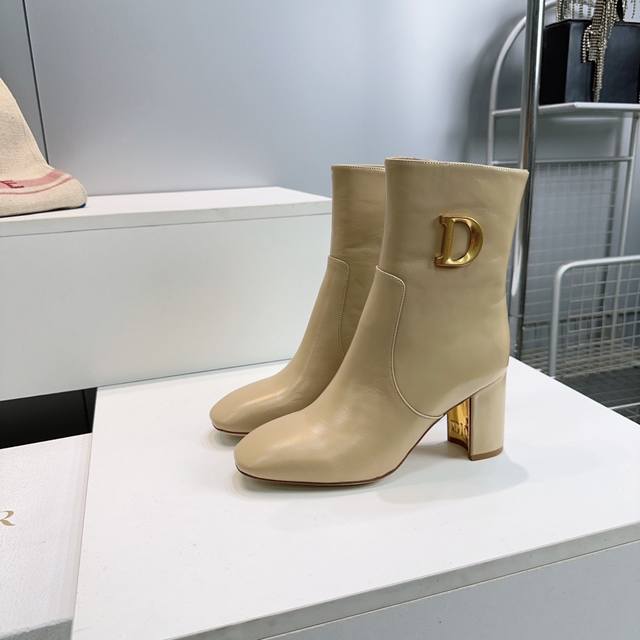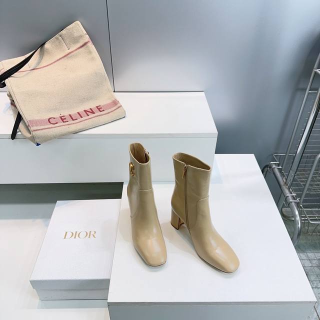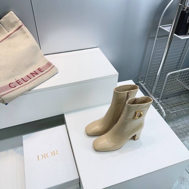 High-quality factory-made ankle boots! Top quality Dior 25Ss Fall/Winter new arrival, Cd metal letter buckle slip-on straight-leg chunky heel round toe ankle boots, riding boots series. These boots showcase a classic style with a modern twist. The straight silhouette is crafted from supple black calfskin, and the sides are adorned with a gold-tone Cd metal buckle for added elegance. A sophisticated design that elevates any look this season. Upper made of imported calfskin, lining with sheepskin, Italian imported genuine leather outsole. Heel height: 8cm. Sizes: 35-42. Orders of 40, 41, and 42 are non-refundable and non-exchangeable. Comes with original packaging.