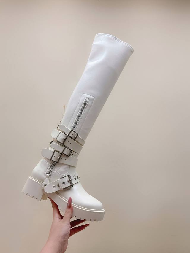 High-quality import DDD Dior buckle riding boots, black calfskin leather with metal buckles, full of punk style! Multi-layered straps and rivet details, clean lines, platform sole design to increase height and make legs look longer, super stylish for autumn and winter. The over-the-knee boots flatter the leg shape, paired with a short skirt or skinny jeans, cool and elegant~ Easily suitable for commuting, dates, and going out, a must-have fashion item for autumn and winter! DDD Size: 35-39 40.41 Custom made DDD