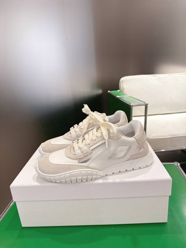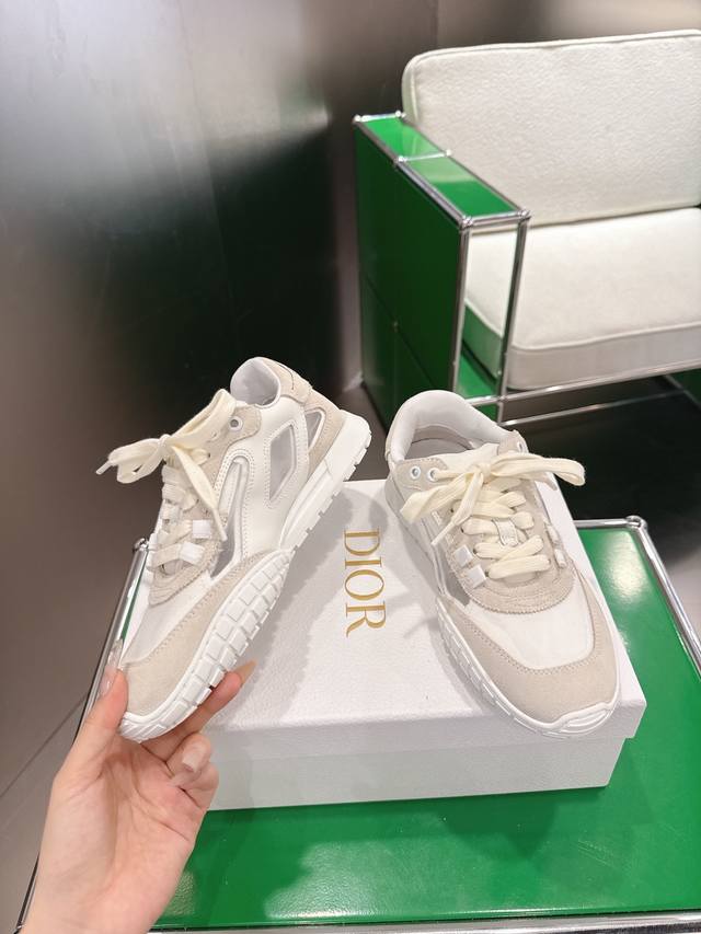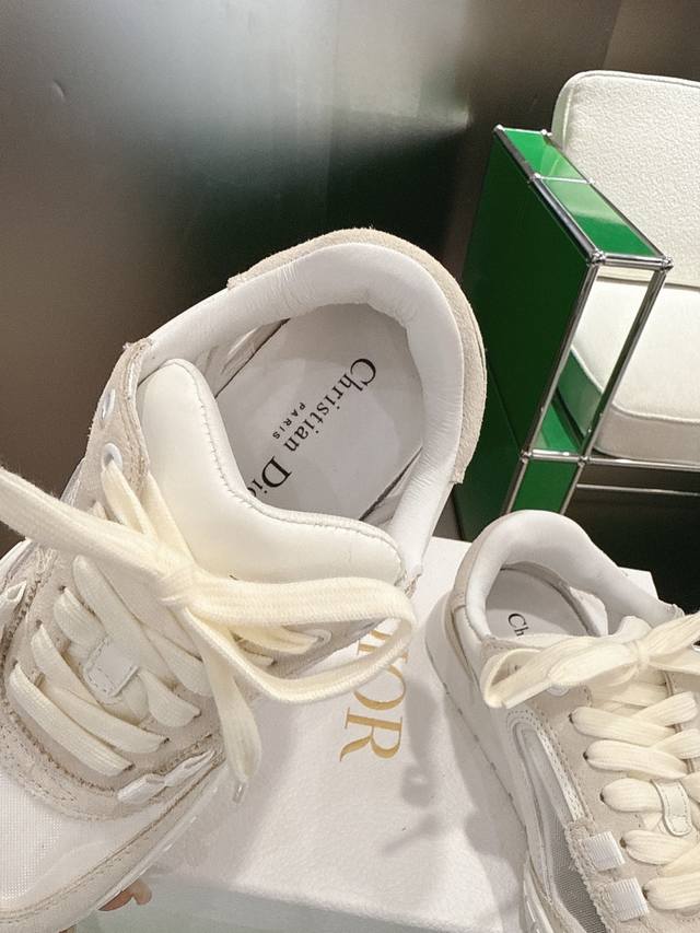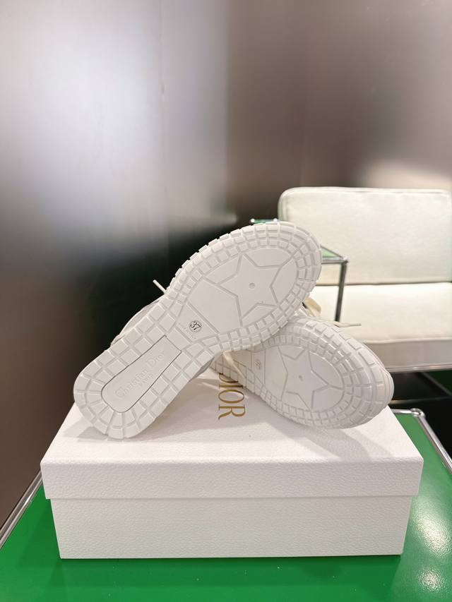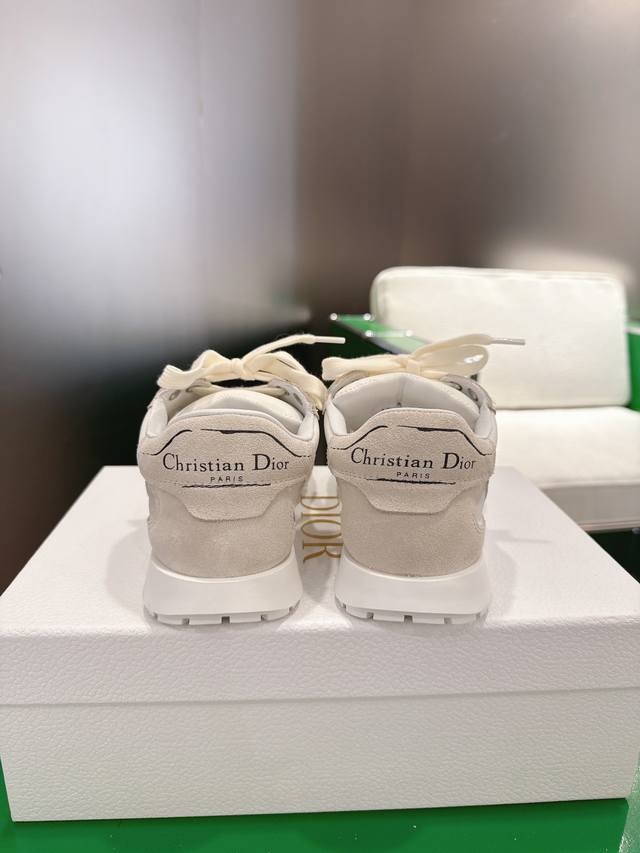 K020 Dior Tech Sneakers (German Training Shoes) This Dior Tech sneaker features stylish details that showcase a retro aesthetic. It has a white suede cowhide leather upper with transparent mesh side panels, and the Christian Dior Paris logo adorns the heel and tongue. A textured brown Dior logo sole adds a touch of haute couture. Main body: Suede cowhide leather, technical fabric Lining: Cowhide leather, technical fabric, sheepskin leather Heel and tongue adorned with the Christian Dior Paris logo Textured Dior logo rubber sole adorned with the Christian Dior lucky star symbol Sizes: 35-44 45.46 Custom made