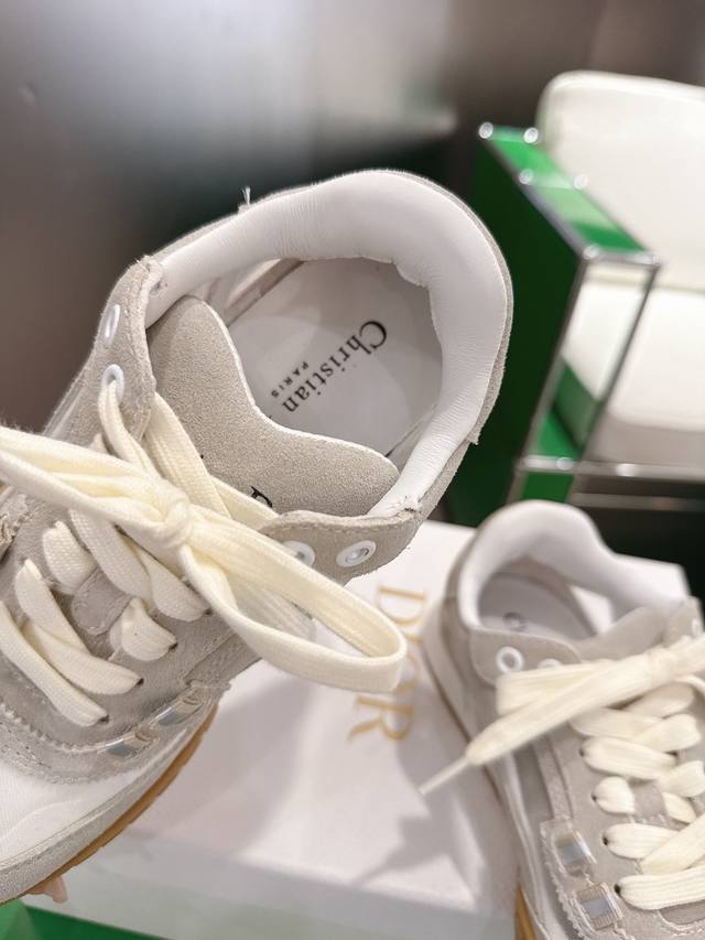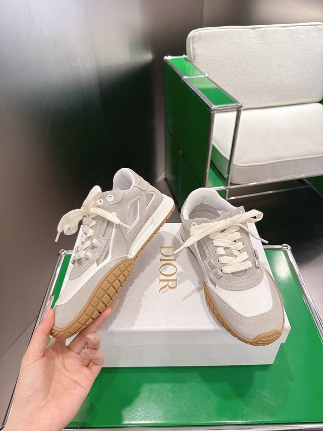 K020 Dior Tech Sneakers (German Training Shoes) This Dior Tech sneaker features stylish details that showcase a retro aesthetic. It has a white suede cowhide leather upper with transparent mesh side panels, and the Christian Dior Paris logo adorns the heel and tongue. A textured brown Dior logo sole adds a touch of haute couture. Main body: Suede cowhide leather, technical fabric Lining: Cowhide leather, technical fabric, sheepskin leather Heel and tongue adorned with the Christian Dior Paris logo Textured Dior logo rubber sole adorned with the Christian Dior lucky star symbol Sizes: 35-44 45.46 Custom made