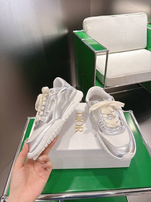 K020 Dior Tech Sneakers (German Training Shoes) This Dior Tech sneaker features stylish details that showcase a retro aesthetic. It has a white suede cowhide leather upper with transparent mesh side panels, and the Christian Dior Paris logo adorns the heel and tongue. A textured brown Dior logo sole adds a touch of haute couture. Main body: Suede cowhide leather, technical fabric Lining: Cowhide leather, technical fabric, sheepskin leather Heel and tongue adorned with the Christian Dior Paris logo Textured Dior logo rubber sole adorned with the Christian Dior lucky star symbol Sizes: 35-44 45.46 Custom made
