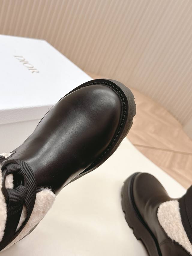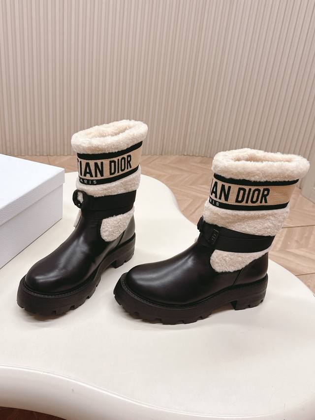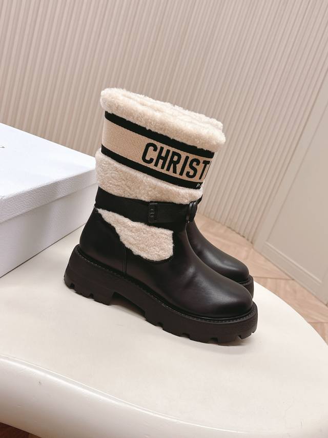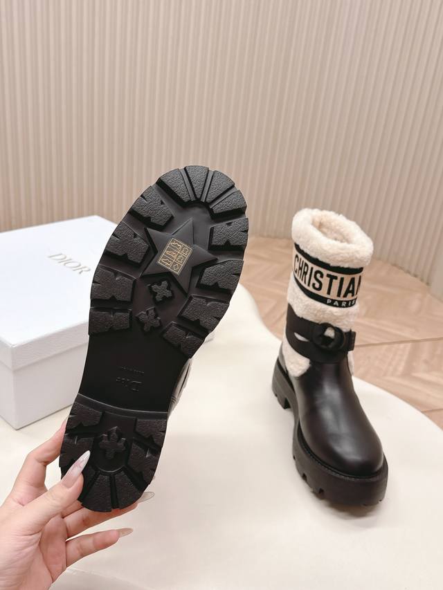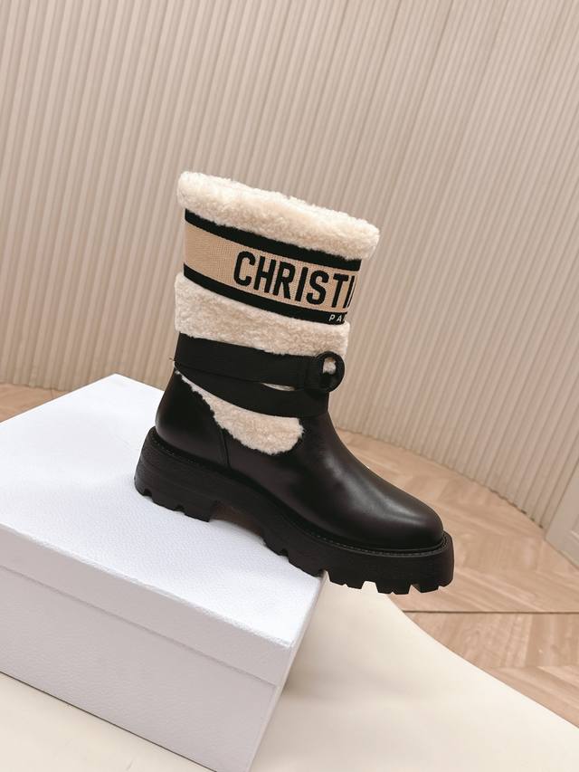 Latest and highest quality version, wool boot style!! Dior Dior CD winter boots, retro work boots, mid-calf wool boots, lace-up wool boot shaft, warm and elegant, full of temperament, comfortable, good-looking and stylish. Material: imported cowhide upper, wool lining, original mold, TPU outsole, heel height: 3cm. Sizes: 35-40. 41 orders placed.
