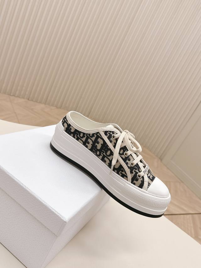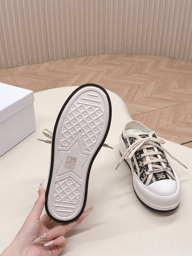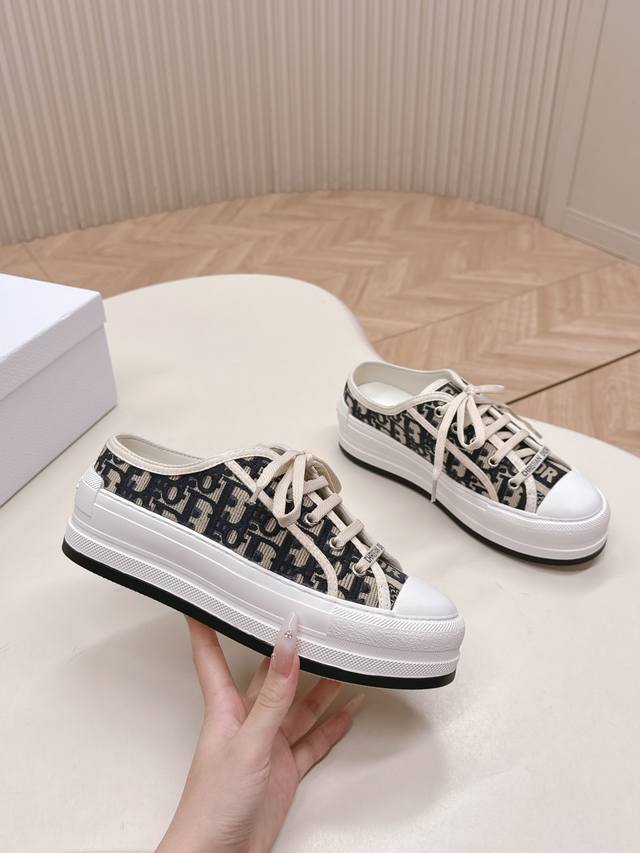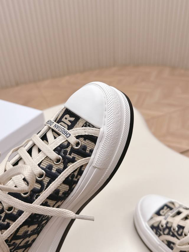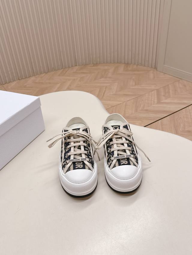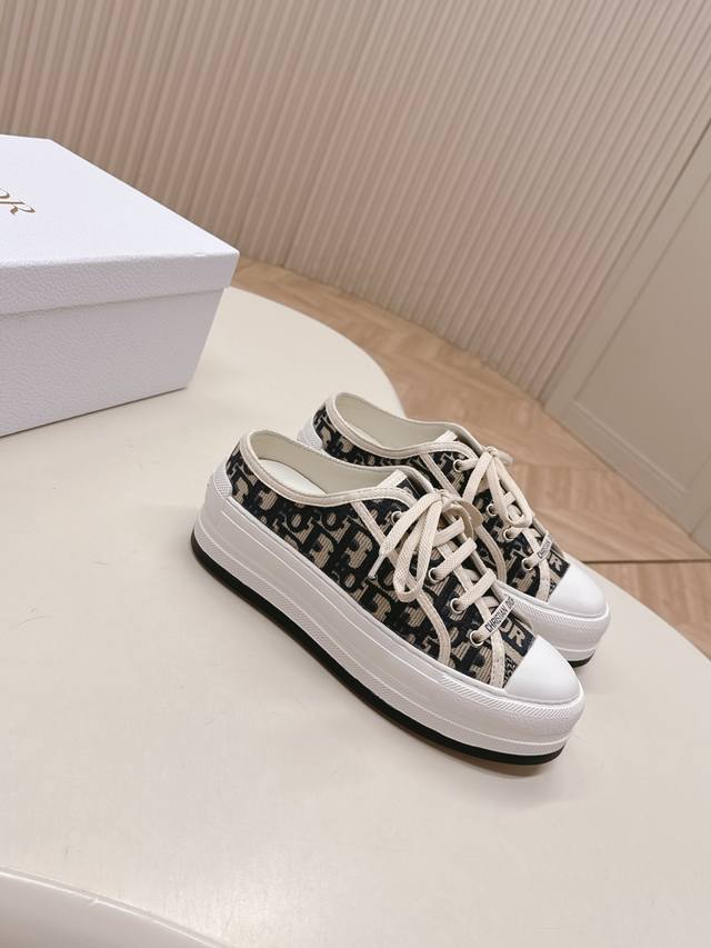 Latest colorway! Available in premium styles, both half-slip and full-top, these Dior Walk'n'Dior platform sneakers are classic floral embroidered canvas casual sneakers. Originally sourced and developed, these Walk'n'Dior platform sneakers are a stylish addition to the collection. The oblique-printed cotton upper features a comfortable thick sole, tongue, and Christian Dior Paris-inspired laces. They add a touch of chic to any casual look. Fabric: Original custom imported oblique print embroidery. Lining: Imported soft sheepskin lining. Outsole: Original, exclusive molded TPU material. Sole thickness: 4.5cm. Size: Women's size 35-40.