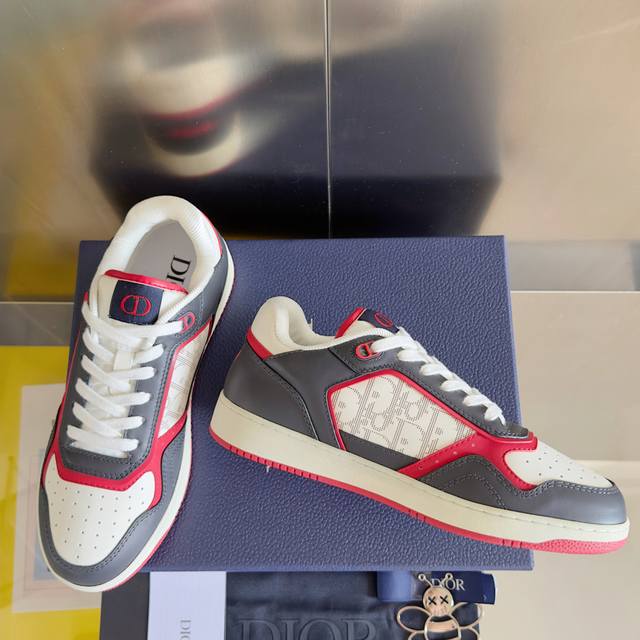 Premium Edition: Low-top, latest colorway, Dior B27 series, couple's pair, monogram print, casual sneakers. Original, purchased, developed, and crafted. This B27 low-top sneaker is a new classic from Dior. Crafted from black grained calfskin leather, it features tonal Dior Gravity print leather panels. The calfskin is embellished with an embossed Oblique print, creating a refined look that showcases the exquisite craftsmanship of the Dior ateliers. The Cd Icon-shaped laces feature intricate eyelets, while the black rubber sole, tongue, and heel are accented with classic details for a refined finish. Low-top design, fashionable and versatile, can complement all kinds of outfits