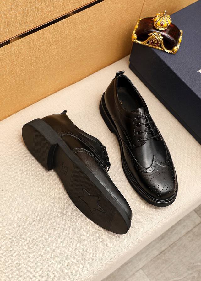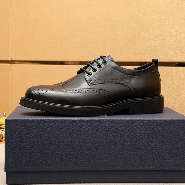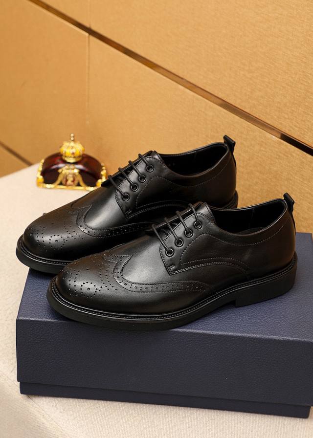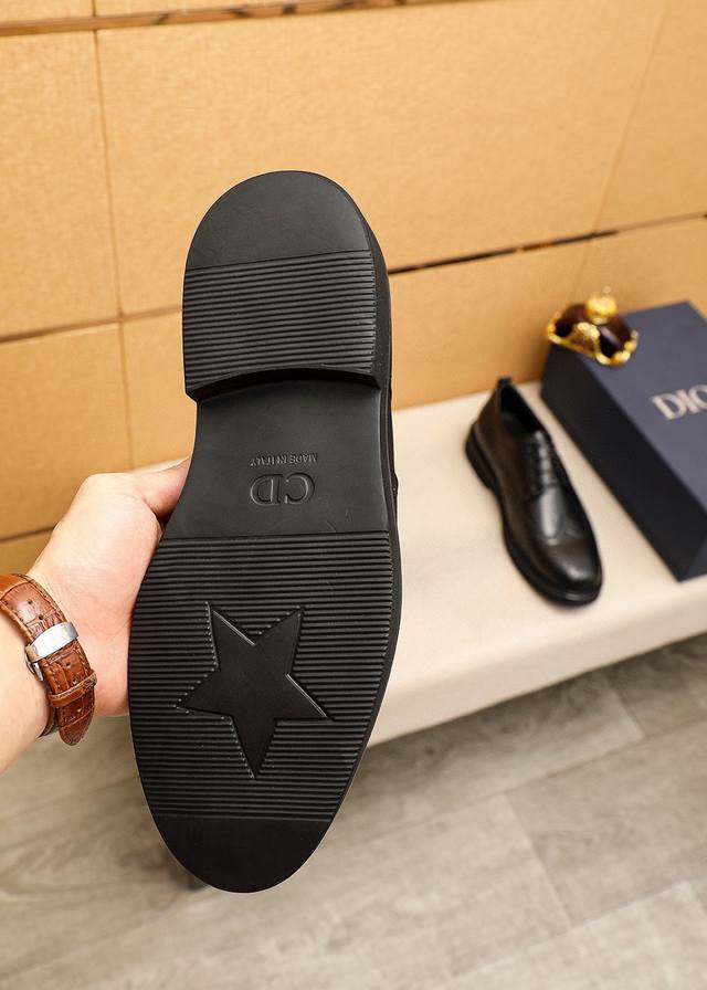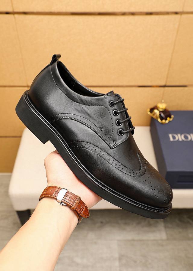 Product Trademark: Dior Business Leather Shoes True to Size: 39-44, 38.45 (Made to Order) Material: Selected Italian imported top-grain calfskin upper, imported water-dyed cowhide lining. Strong three-dimensional visual effect, original outsole. Color: 2 leather options available.