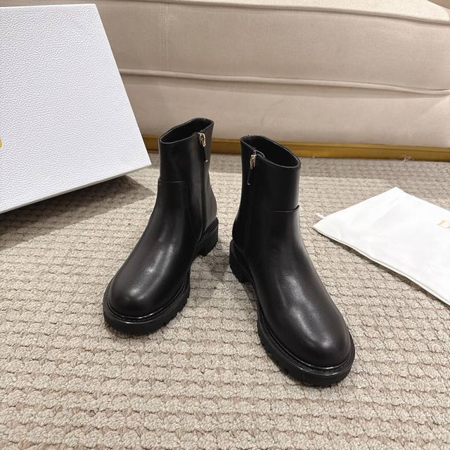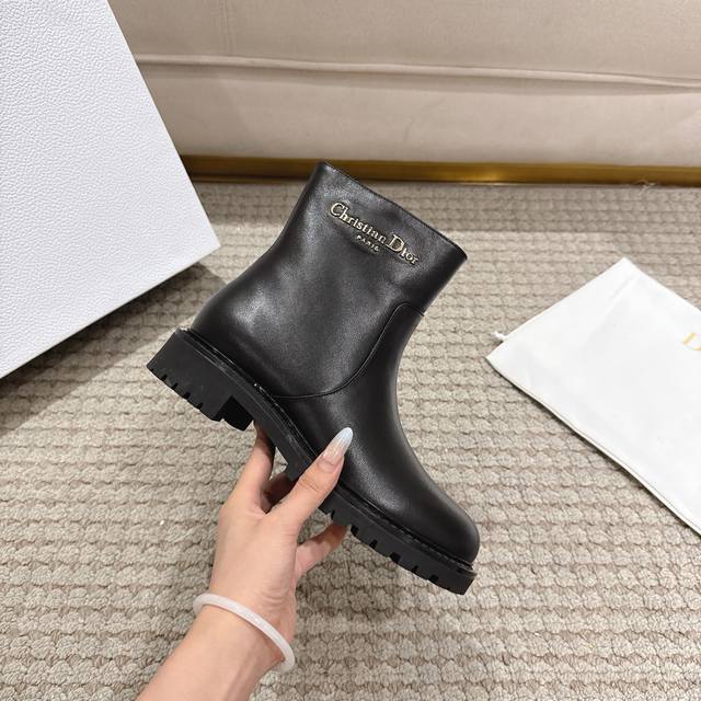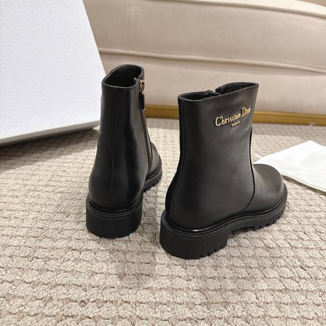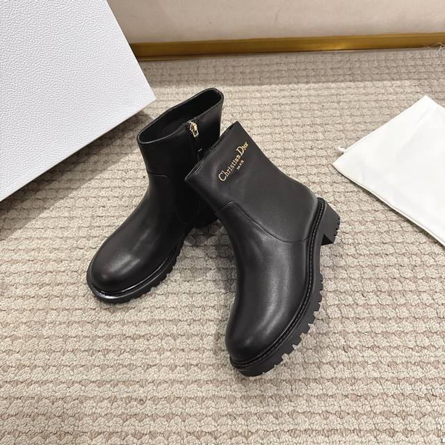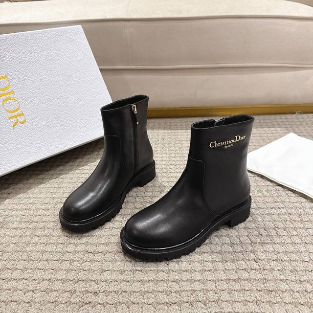Retailer Level! The Dior D-Town ankle boots are a timeless style. The black brushed leather upper is adorned with a gold-tone Christian Dior Paris signature. They feature a side zip closure and a rubber sole with a star-shaped notch. Main components: cowhide leather lining, original mold TPU outsole. Sizes: 35-41. Sizes 35 and 41 are custom-made, non-refundable and non-exchangeable.