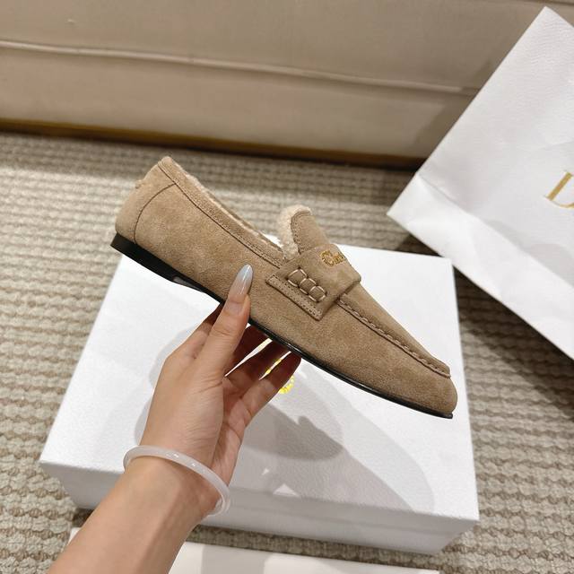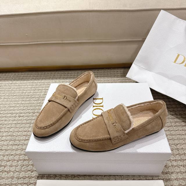 Retailer Level! These Dior Boy loafers are a new addition to the Fall 2025 collection, reinterpreting a classic design with elegance. The soft suede leather paired with a white lambskin wool-effect lining accentuates the almond-shaped toe, while the gold-plated Christian Dior Paris logo elevates the overall style. They can be paired with various looks this season, adding a touch of sophistication to any elegant outfit. Upper Material: Suede cowhide leather, technical fabric, and virgin wool lining. Outsole: Italian genuine leather outsole. Sizes: 35-41. Sizes 35 and 41 are custom-made, non-refundable and non-exchangeable.
