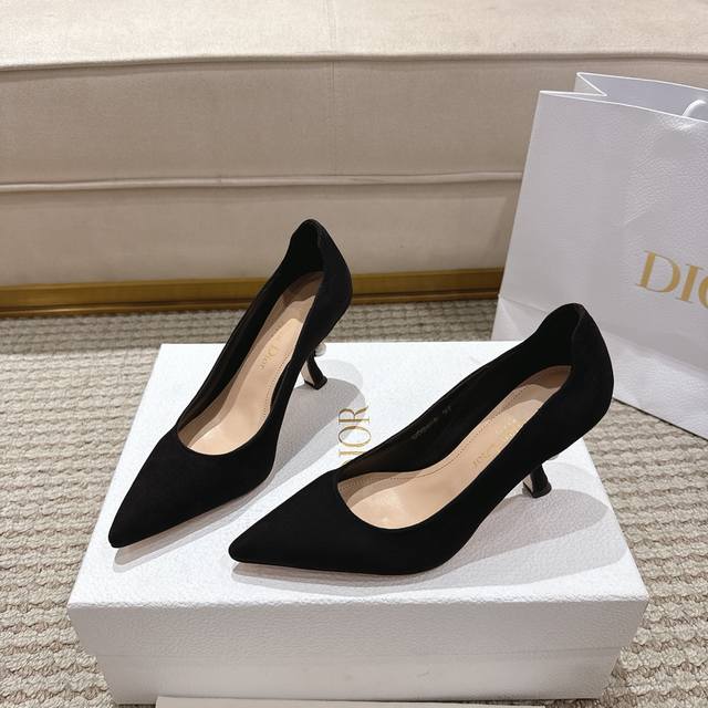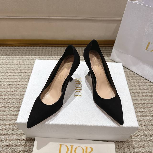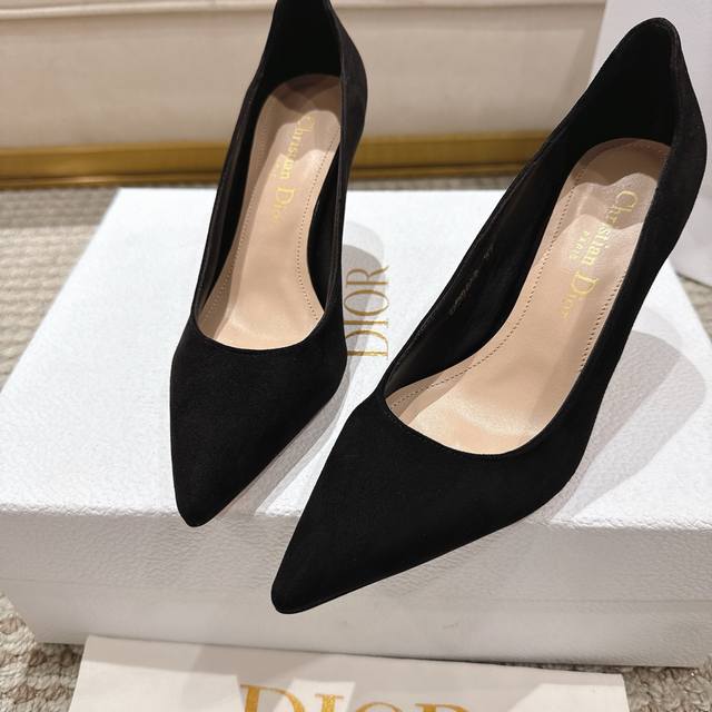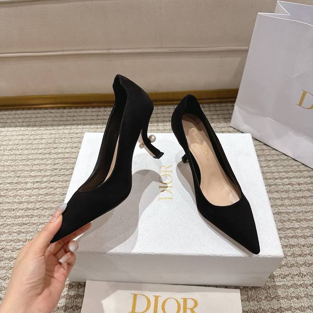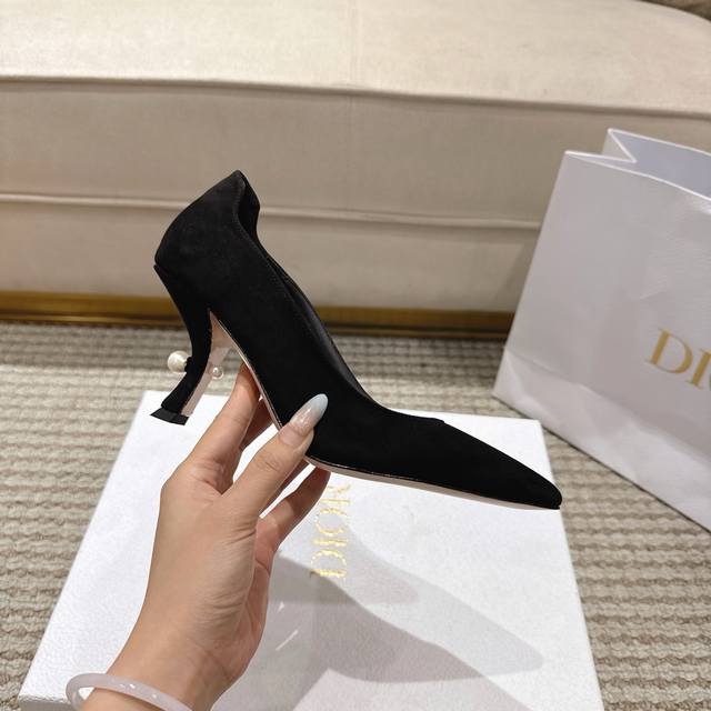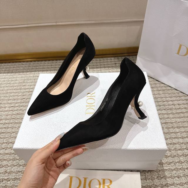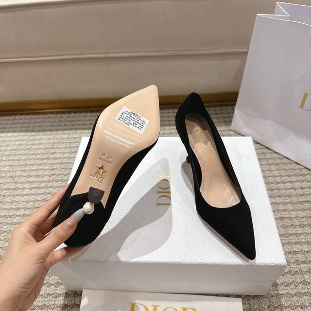 Retailer Level! These Dior Tribales high heels are a new addition to the 2025 Early Spring Ready-to-Wear collection, showcasing haute couture glamour. The upper is crafted from classic black suede lambskin and top-grain patent leather, while the 8cm comma heel is adorned with white resin beads for added sophistication. The heel is further embellished with a gold-plated Cd logo, inspired by the eponymous earrings. The pointed toe design is elegant and refined, easily complementing various evening gowns. Main body: Suede lambskin, top-grain patent leather Lining: Lambskin leather Outsole: Italian genuine leather Sizes: 35-43 (35, 41, 42, 43 are custom-made, non-refundable and non-exchangeable)